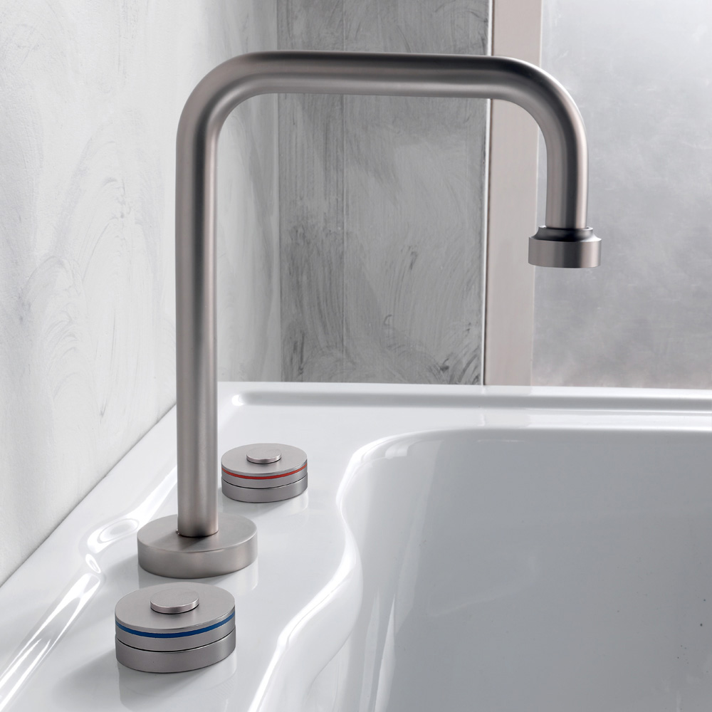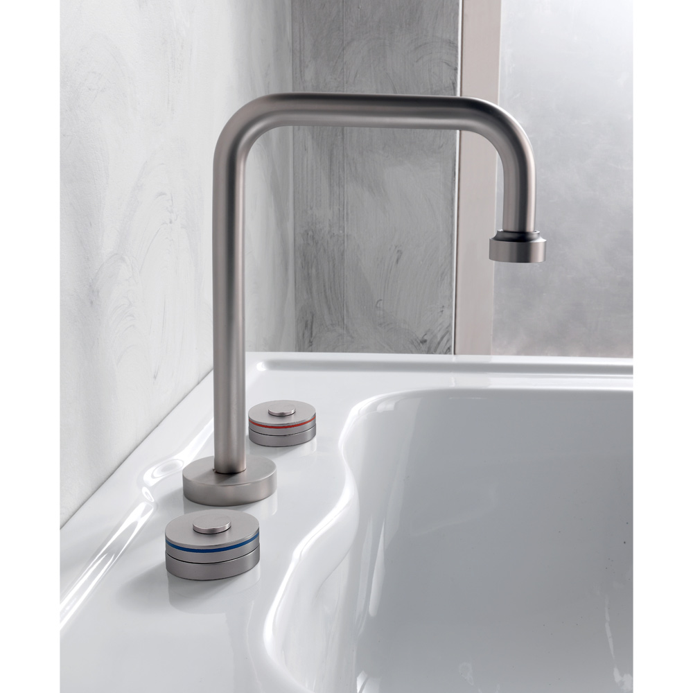 Moderní tříotvorová mosazná umyvadlová baterie s výpustí Made in Italy