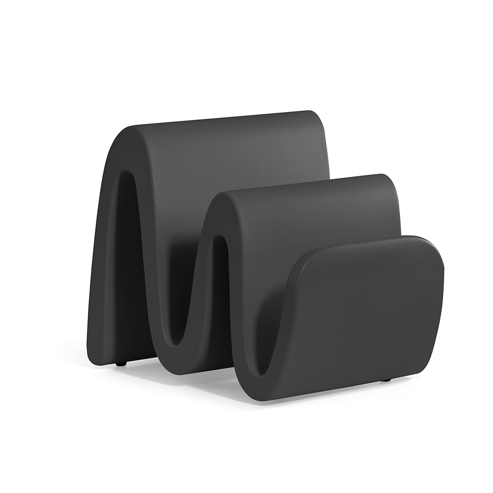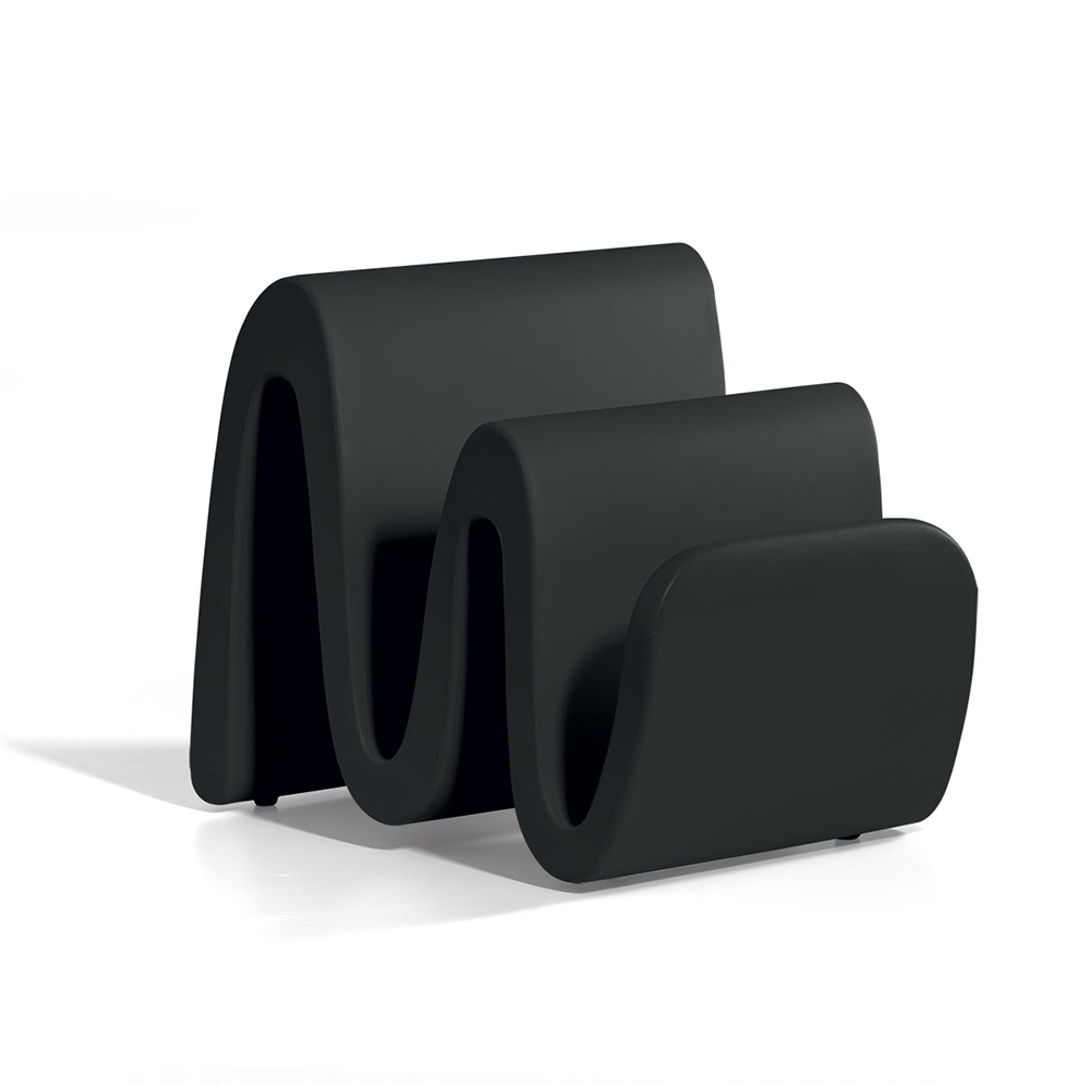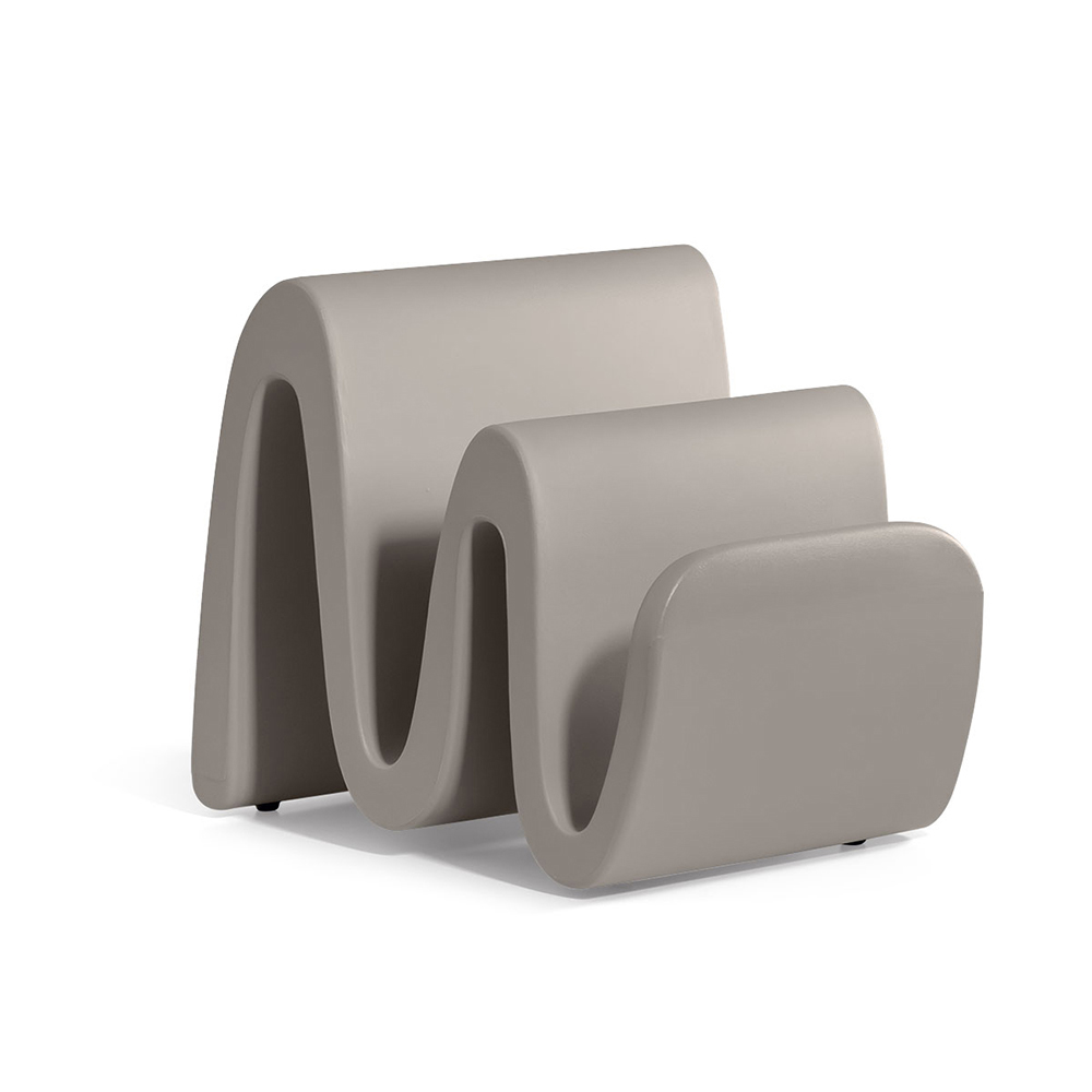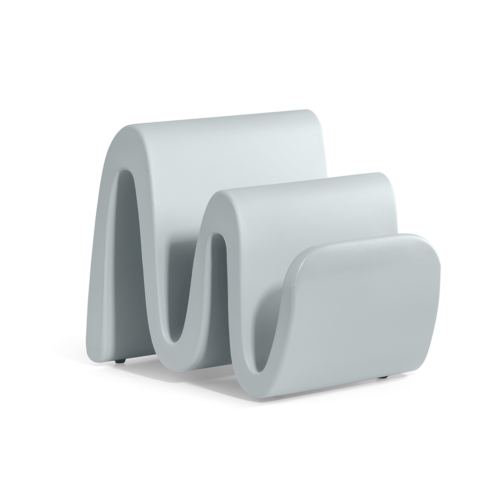 Tento stojan na časopisy vyrobený výhradně v Itálii z barevného polyetylenu se vyznačuje rafinovaným designem a zvláštním tvarem, který připomíná malou vlnu. Extrémně funkční , tento stojan na časopisy je nábytkovým doplňkem vhodným do jakéhokoli prostředí a vnitřních prostor, který dokáže upoutat pozornost díky svému minimalistickému, ale současnému a podmanivému stylu.