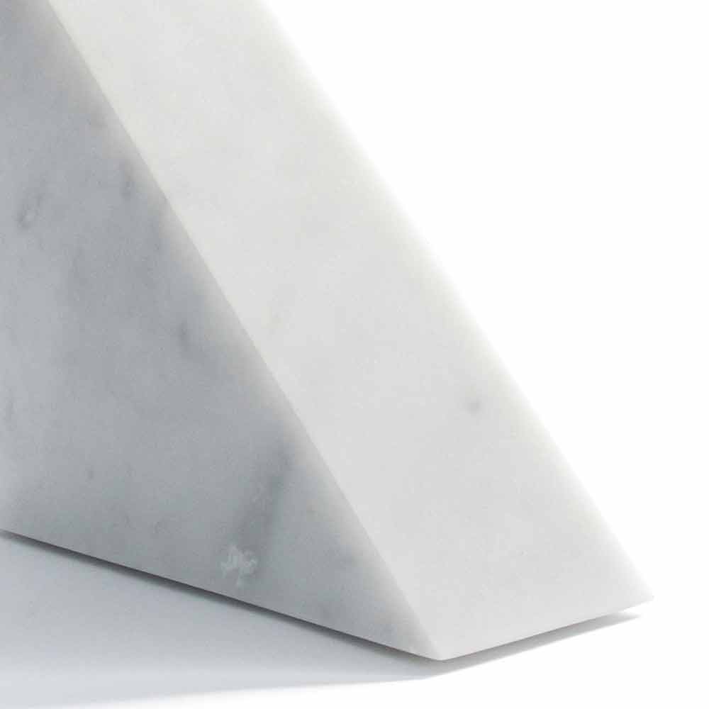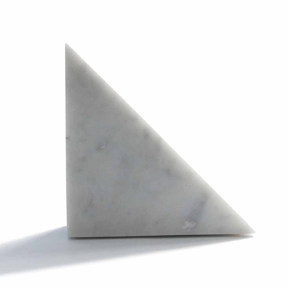Těžítko s trojúhelníkem, které kombinuje funkčnost a eleganci zároveň. Vyrobeno z bílého mramoru Carrara . Jedná se o jedinečný kus, protože každý použitý blok mramoru se liší od ostatních pro žíly a odstíny.