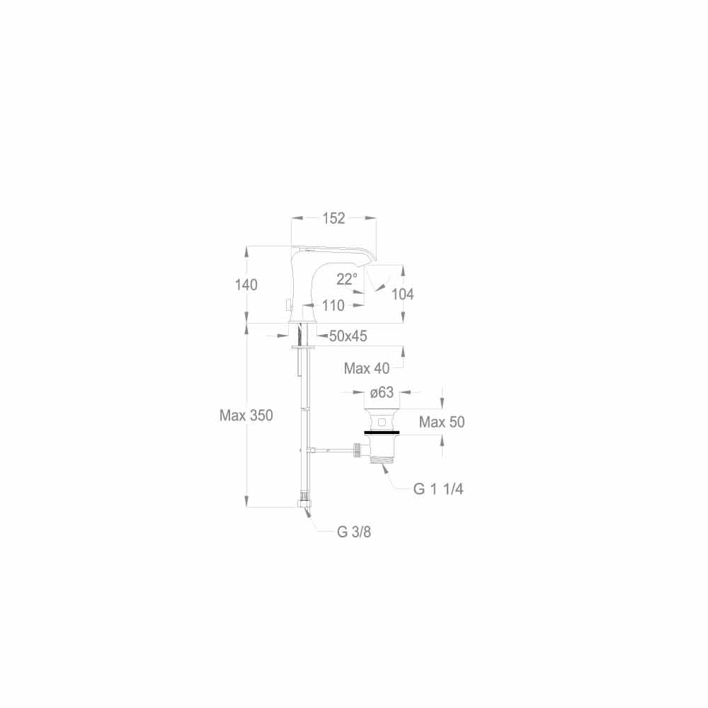 Umyvadlová baterie z chromované mosazi Vyrobeno v Itálii.