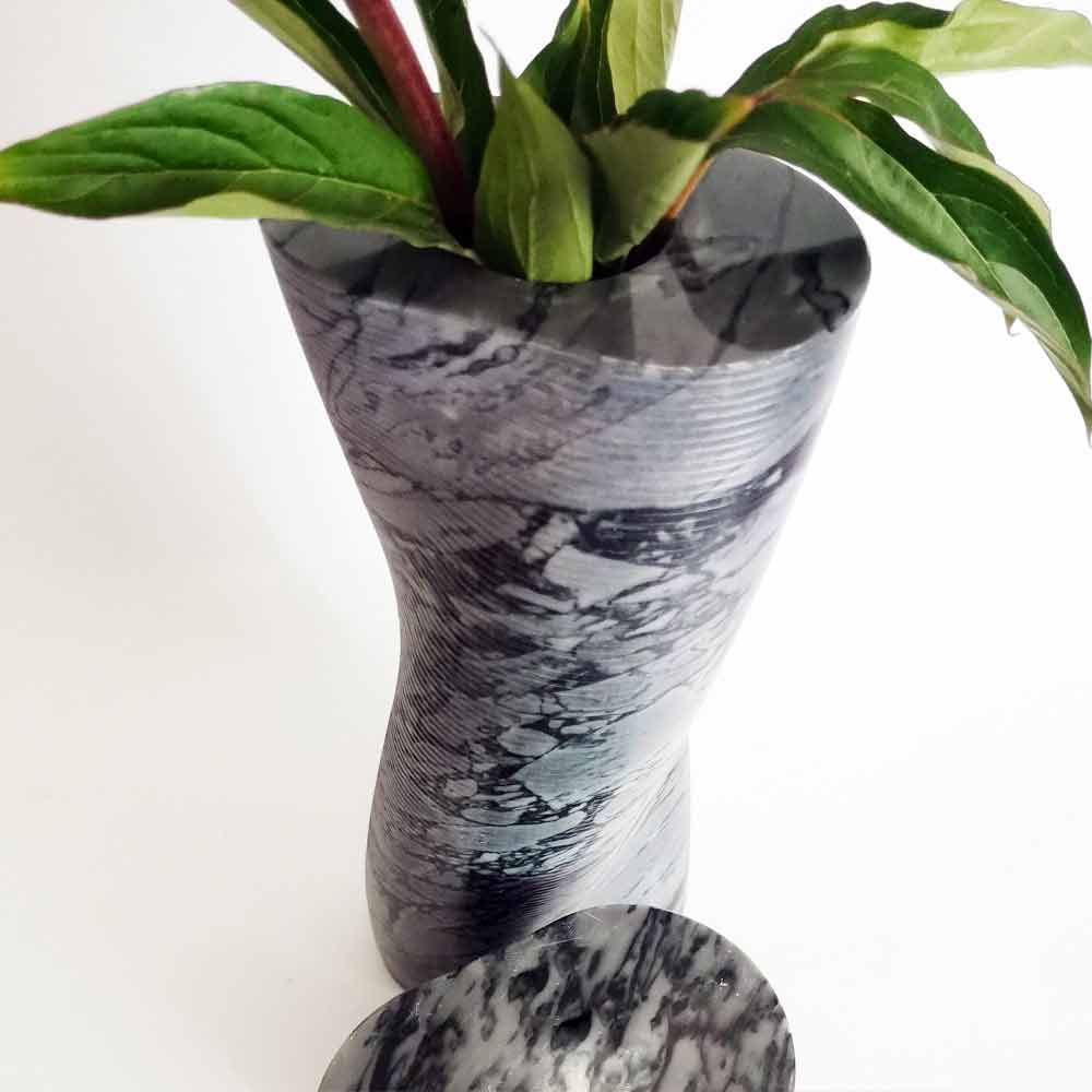 Moderní designová váza z květovaného mramoru Bardiglio vyrobená v Itálii.