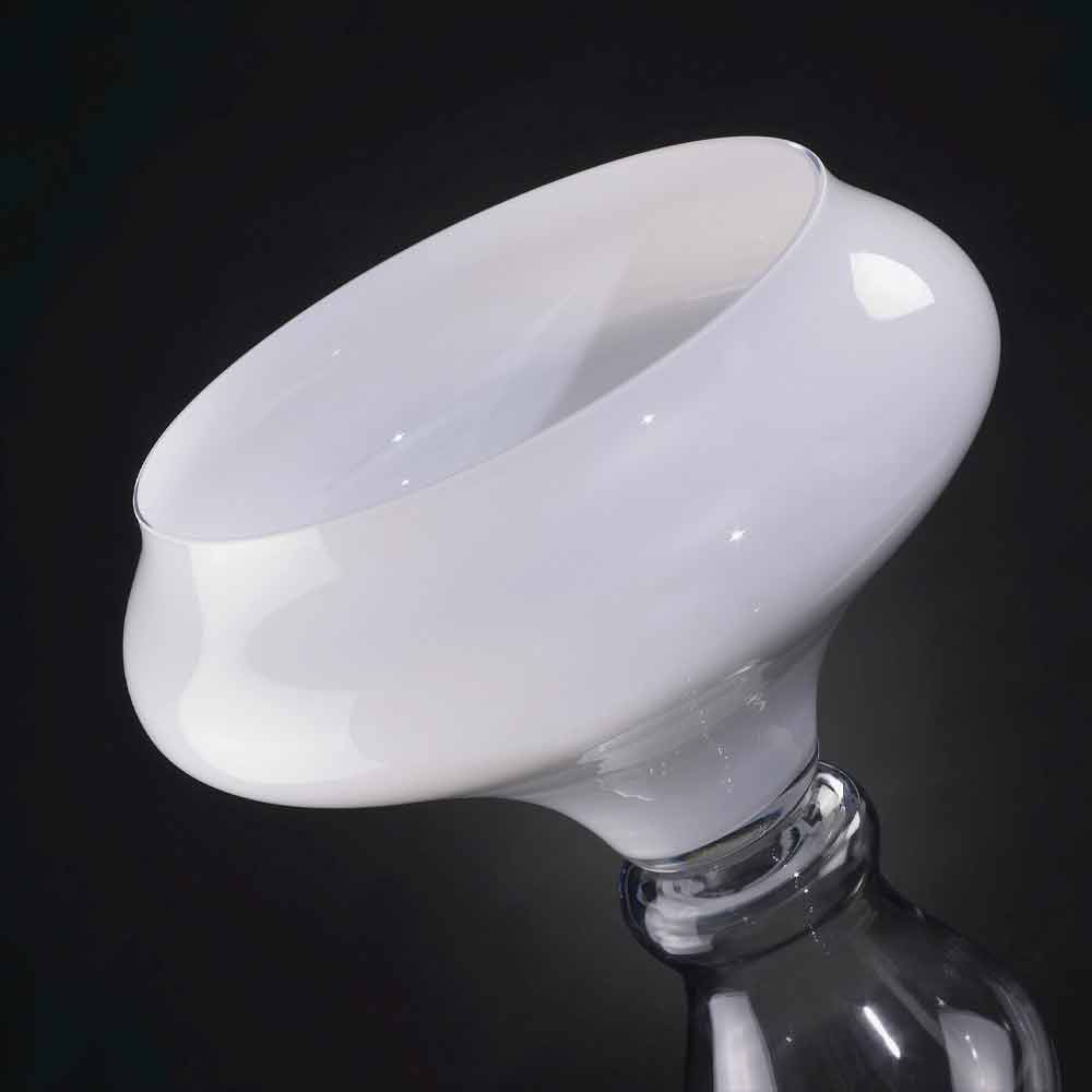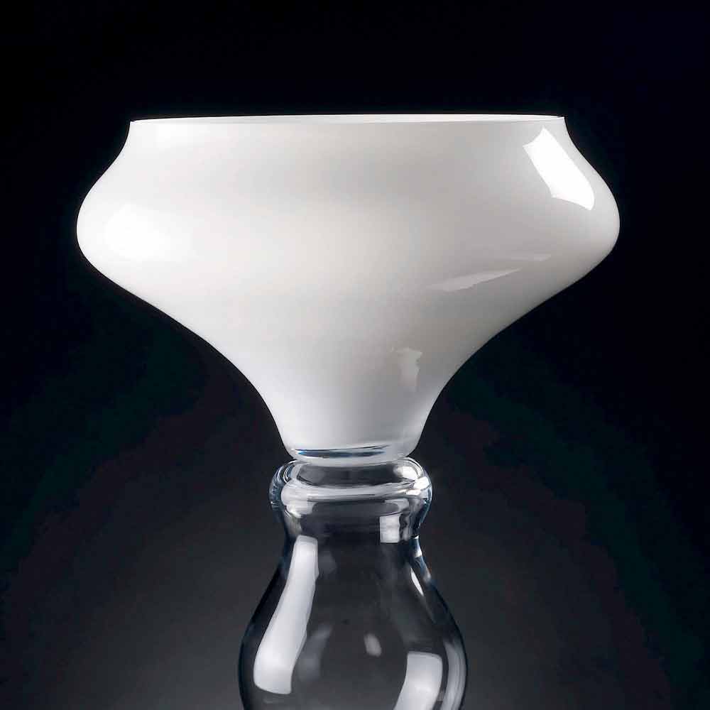 Elegantní váza do interiéru v bílém a průhledném skle vyrobené v Itálii.