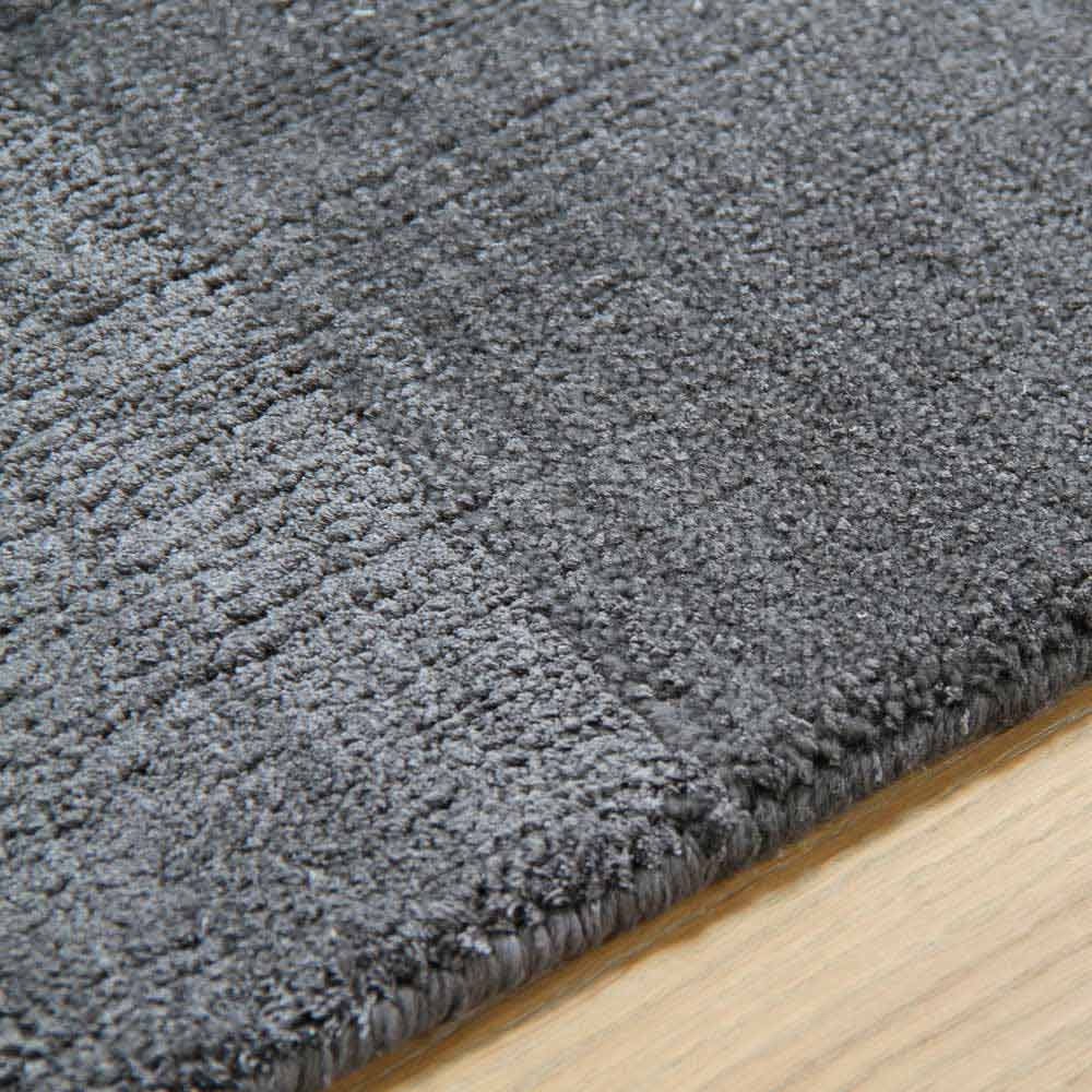 Moderní designový velký koberec z hedvábí, bavlny a vlny k dispozici v několika barvách s pásmem tón-na-tón.