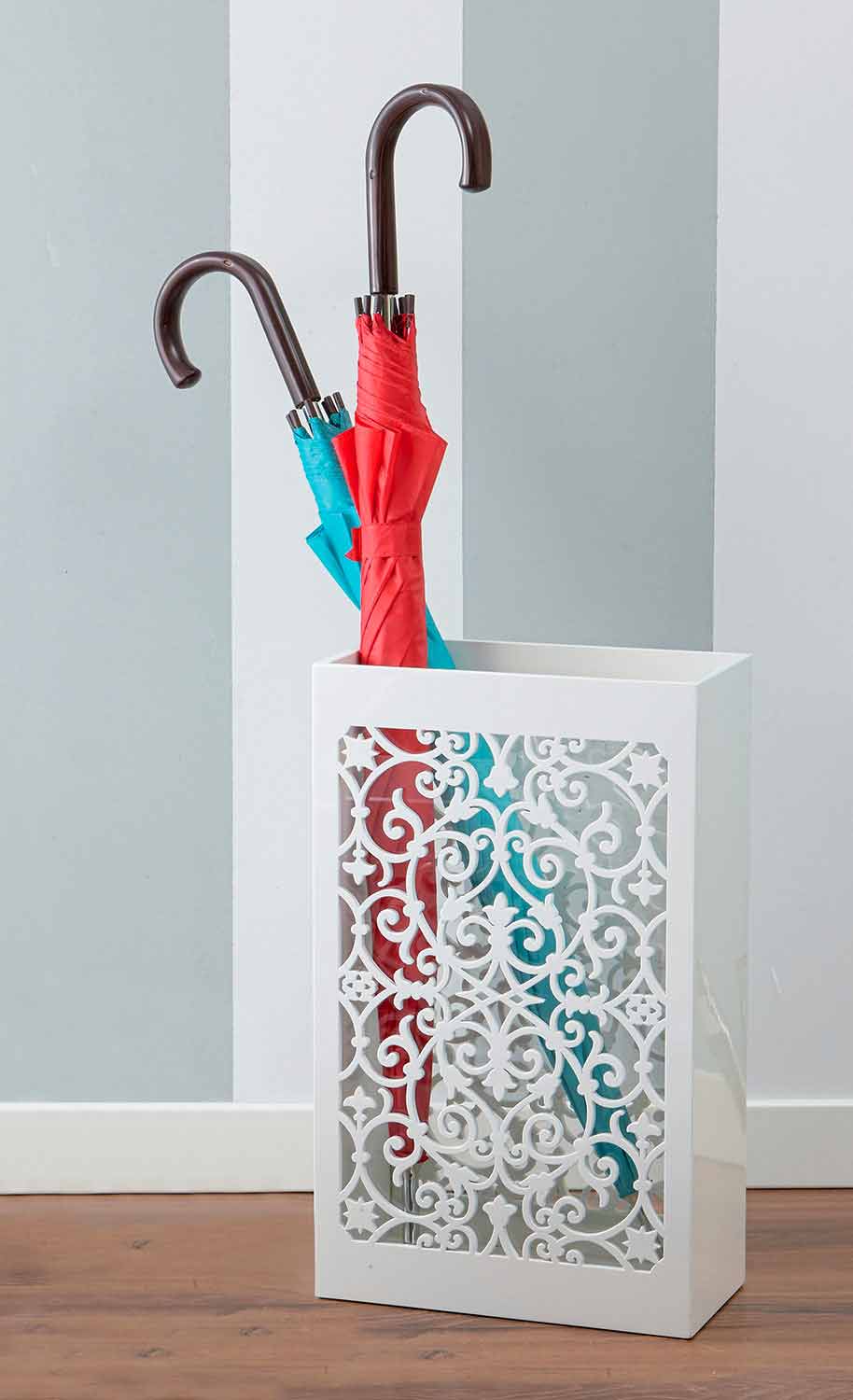 Stojan na deštníky z bílého, štěrkového, holubičího nebo pískového dřeva s moderním designem zdobeným motýly, vyrobený v Itálii.