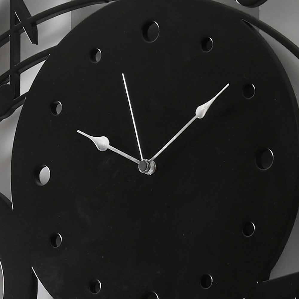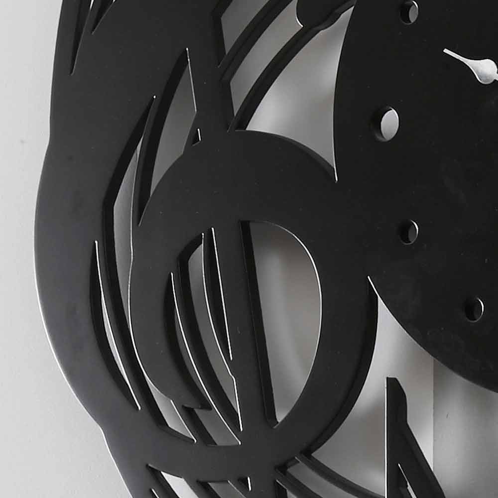 Velké nástěnné hodiny, kulaté a moderní design s notami v černém dřevě a vyrobené v Itálii.