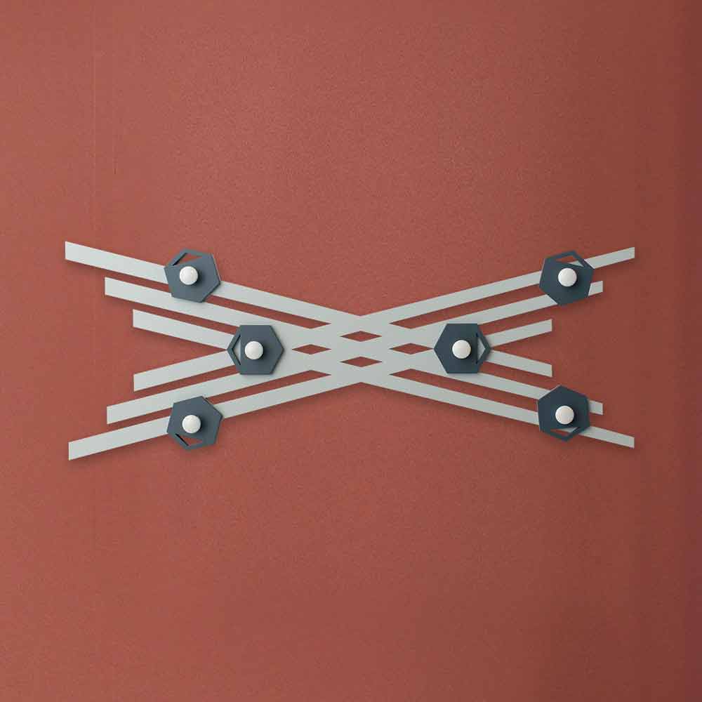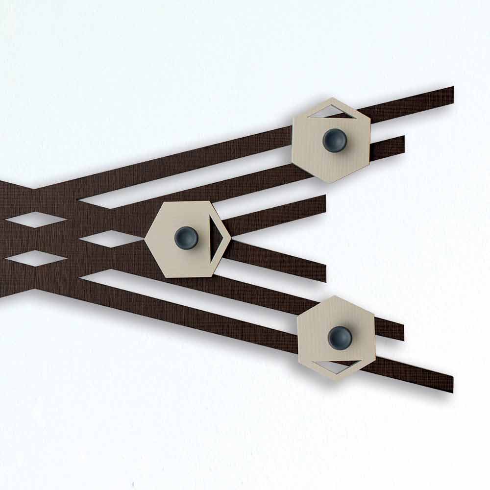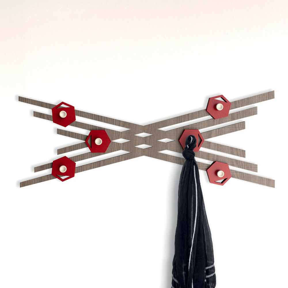 Nástěnný stojan na kabáty, moderní design z barevného dřeva, vyrobený v Itálii.