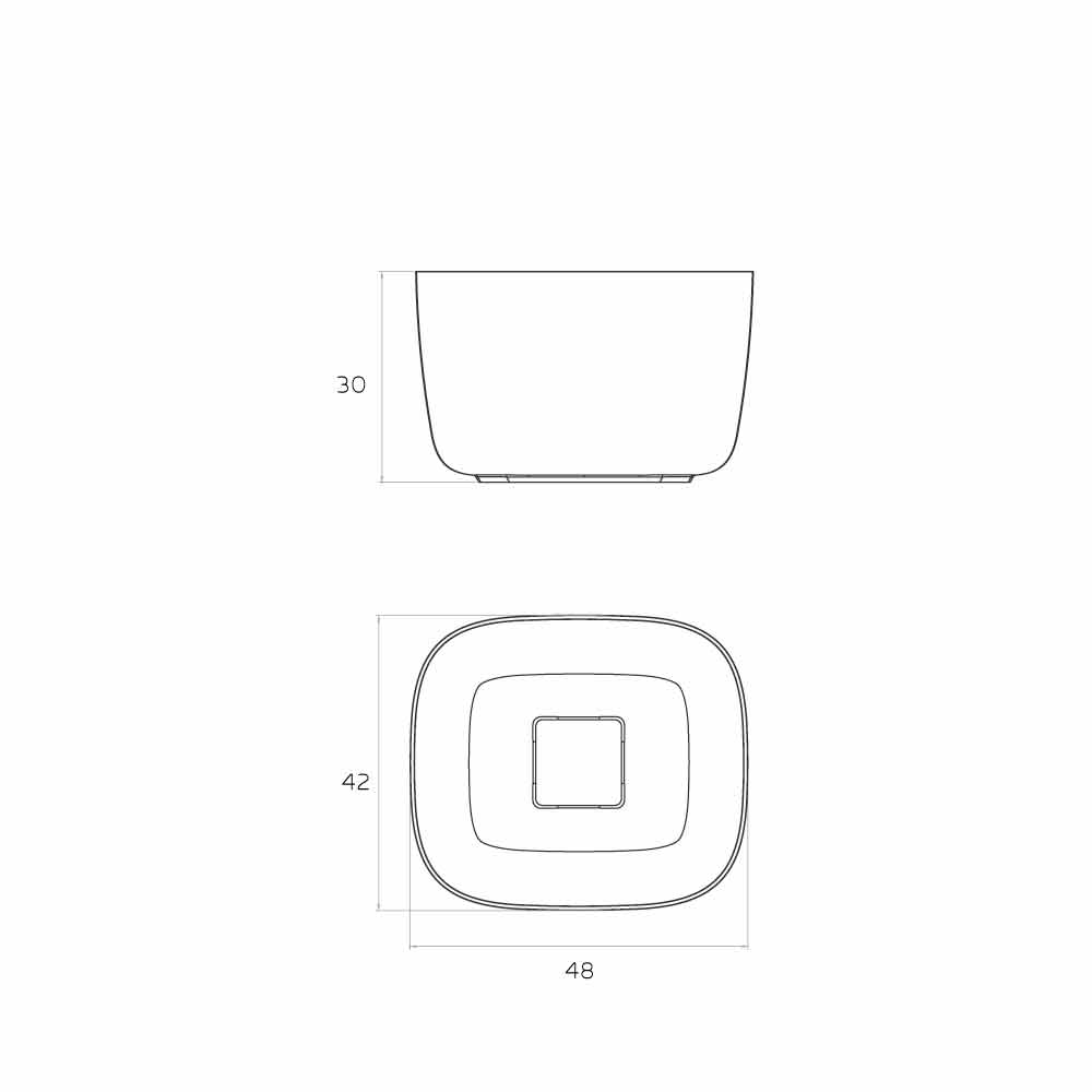 - L 42 x P 42 x H 30 cm;