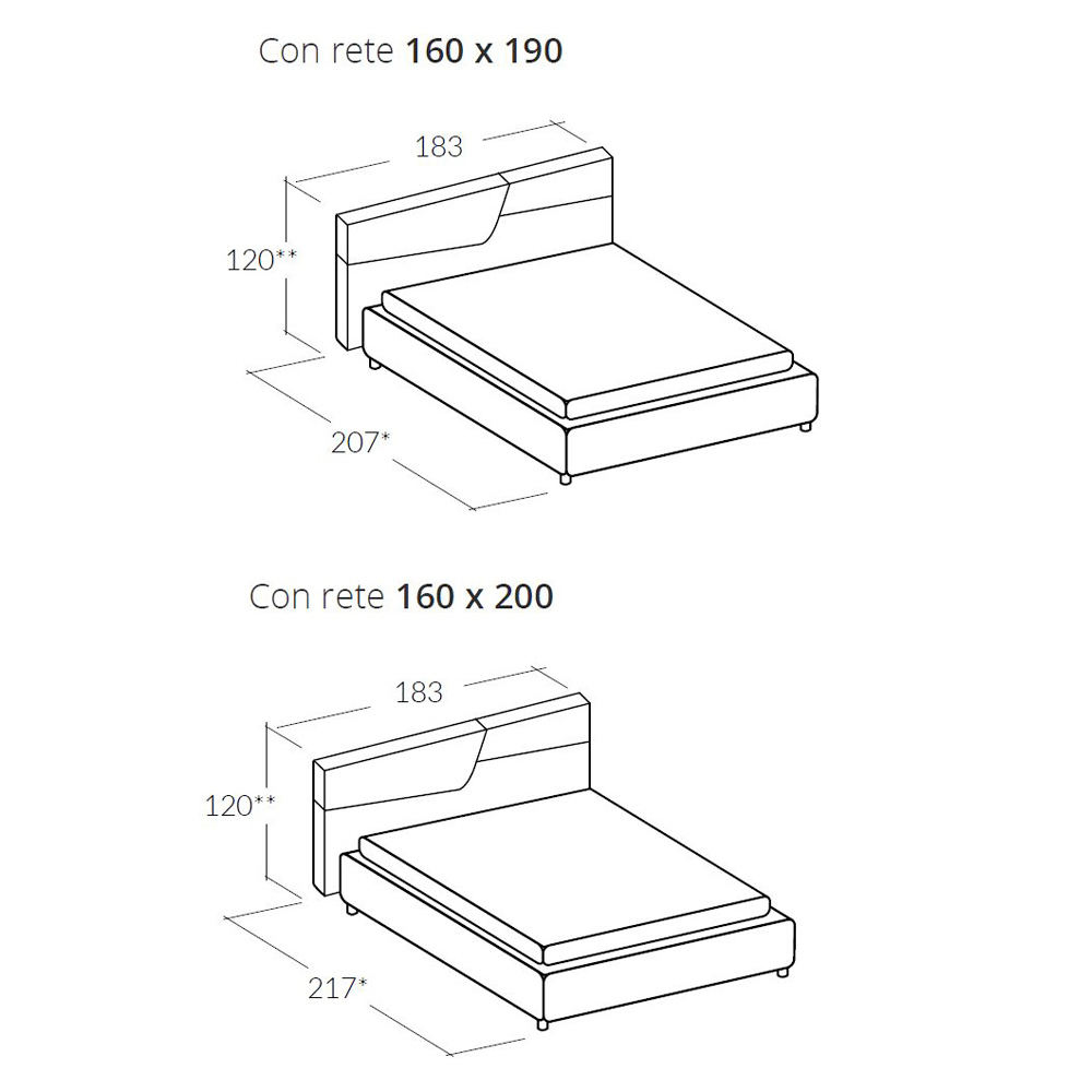 - D183 x V120 x P219 cm (pro základ postele 160 x 200)
