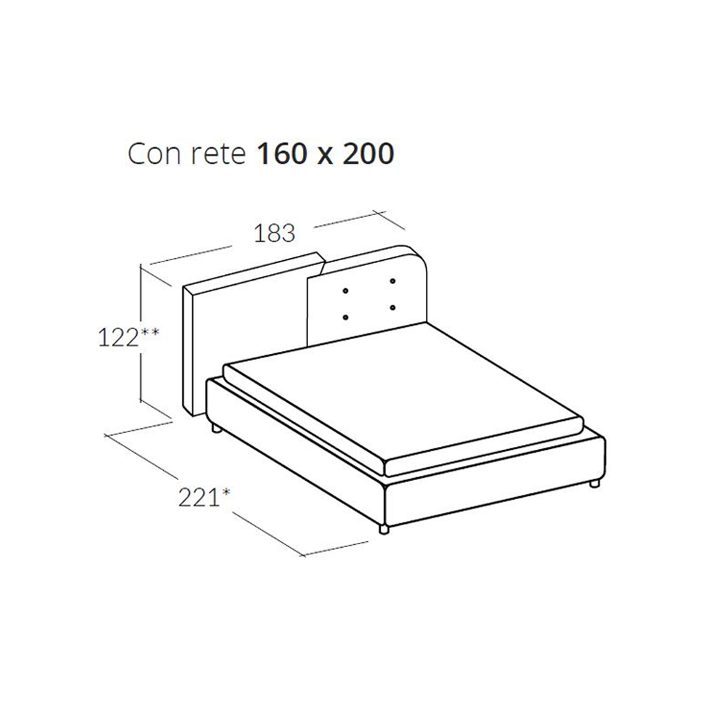Čtvercový rám postele měří 5 cm a je šitý, nelze jej sundat . Nohy jsou vyrobeny z černého plastu a jsou vysoké 8 cm, vyčnívají 7 cm od země. Síť v ceně .