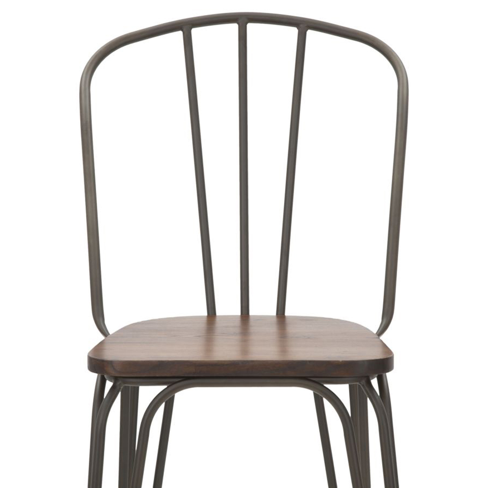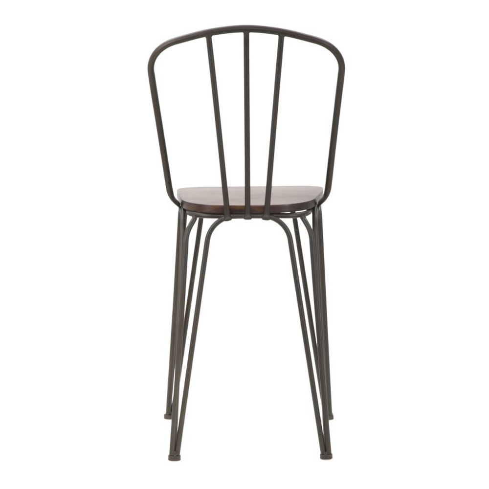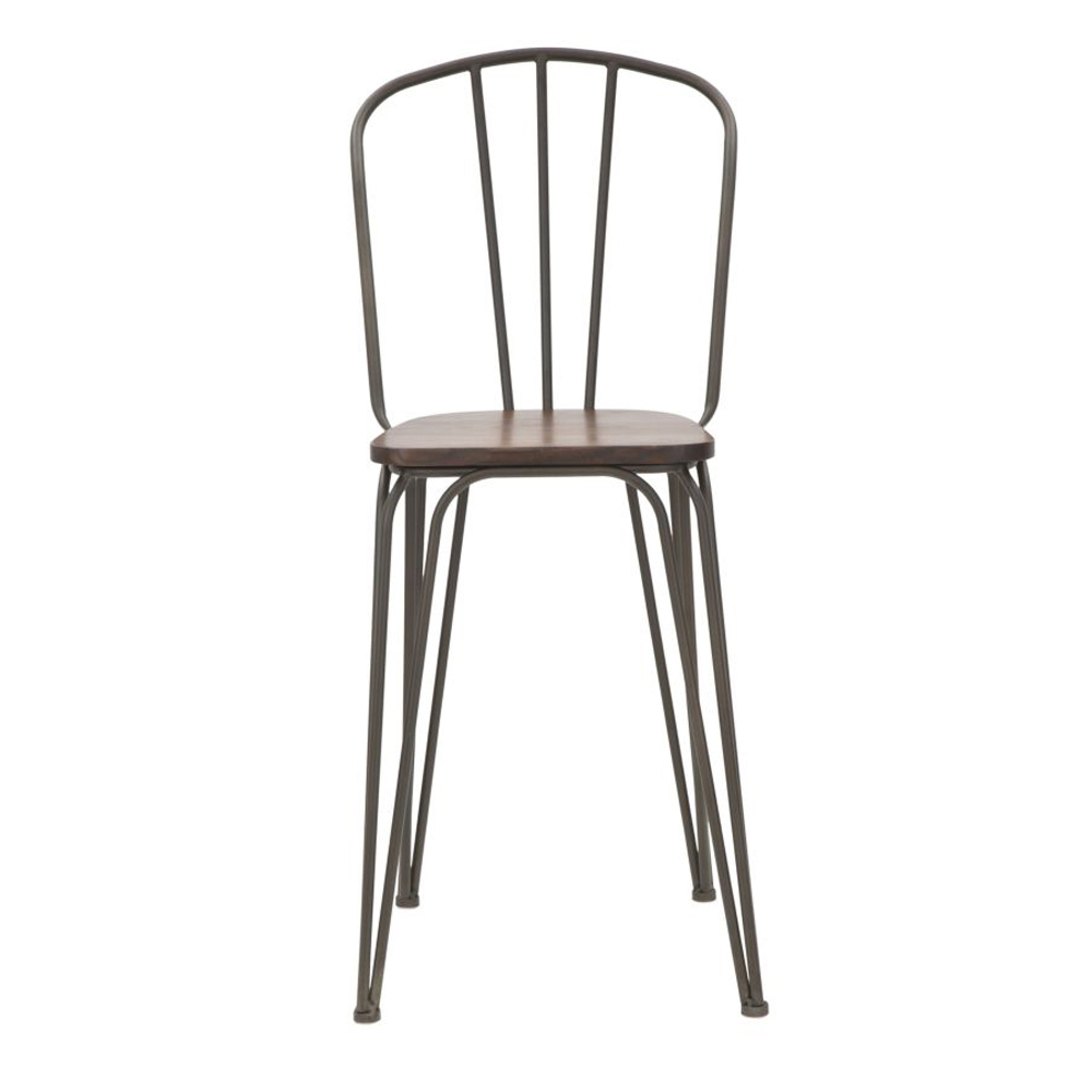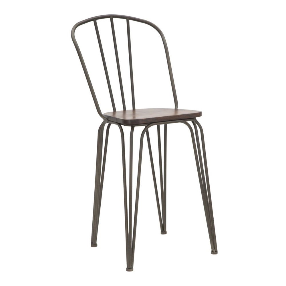 Stolička ze železa a dřeva s designem v industriálním stylu.