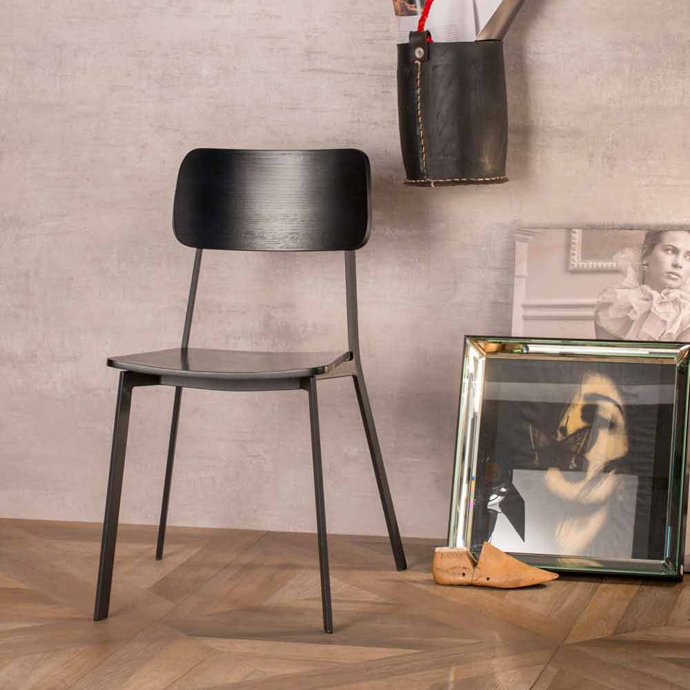 Designová živá židle z barevného dřeva a kovu, 4 ks
