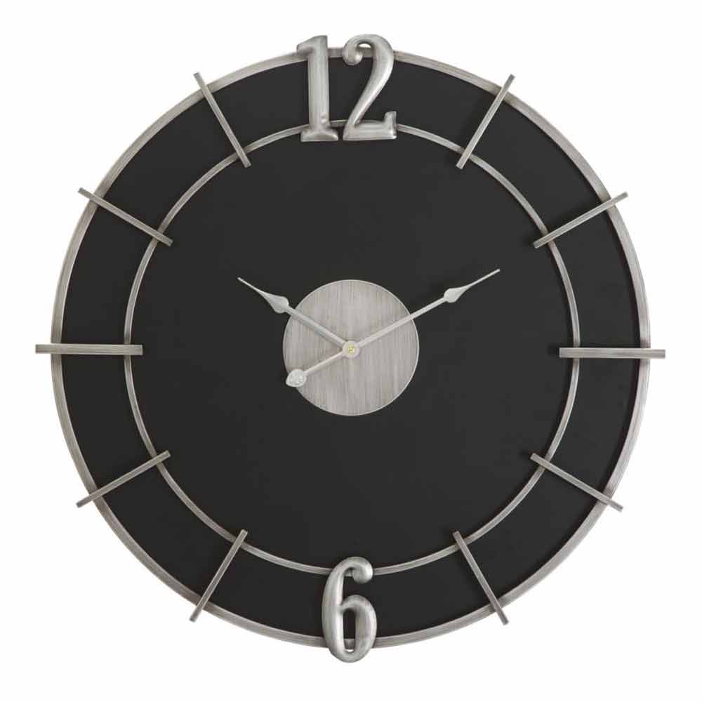 Moderní designové železné a MDF hodiny s kulatou stěnou.