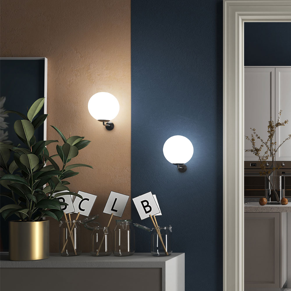 Nástěnné svítidlo s kulatým difuzorem z ručně foukaného skla v Benátkách.