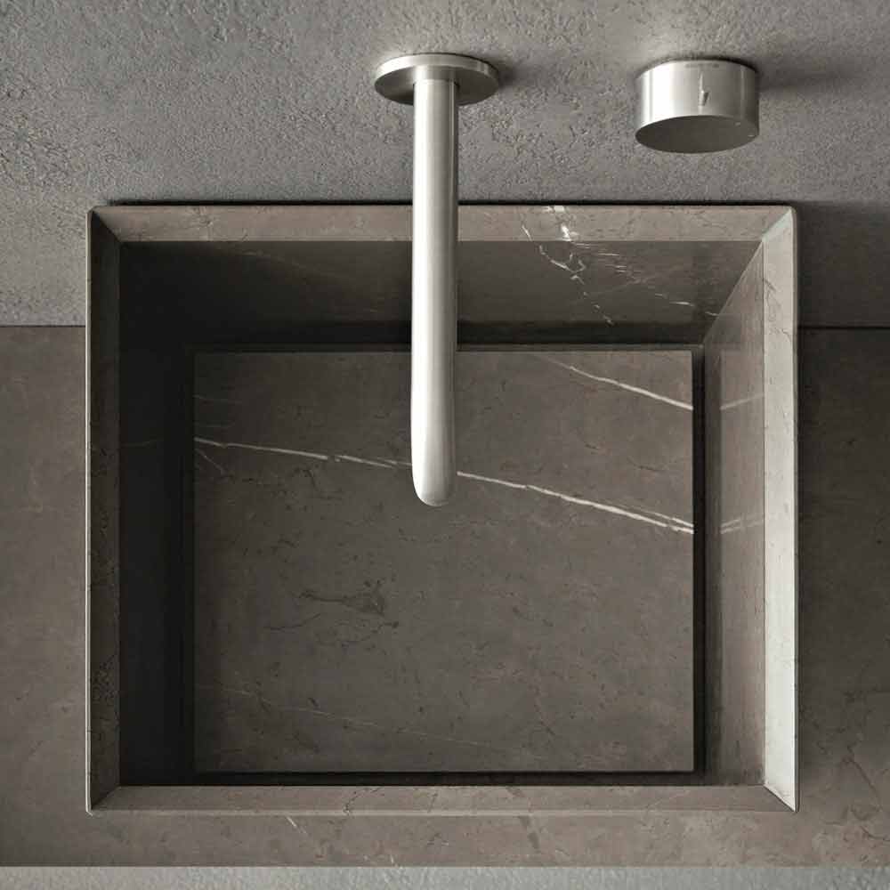 Čtvercové umyvadlo na desku, moderní design z přírodního kamene, se skrytým odtokem.