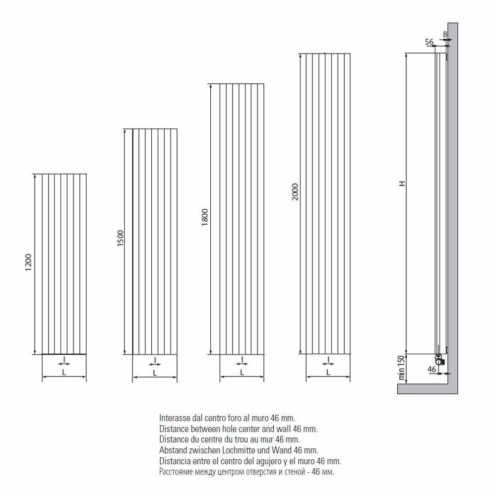 Dostupné v různých velikostech *:- V 1200 x D 293 x Inter. 50 mm x výstup w (Δt50 *) 420; Výtěžek w (At30 *) 215; Výtěžek w (A26 *) 182;