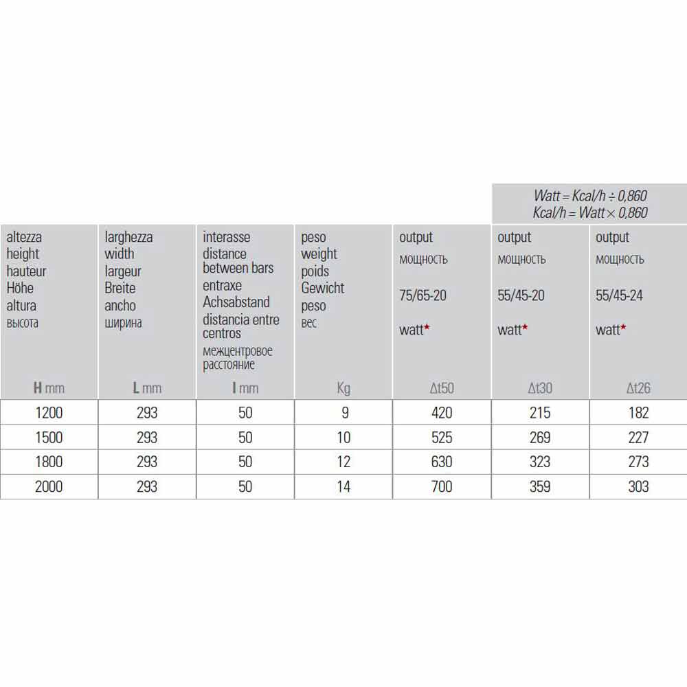 - H 2000 x L 293 x Inter. 50 mm x výkon w (Δt50 *) 700; Výtěžek w (At30 *) 359; Výtěžek w (A26 *) 303;