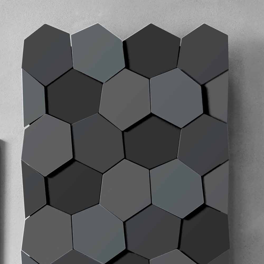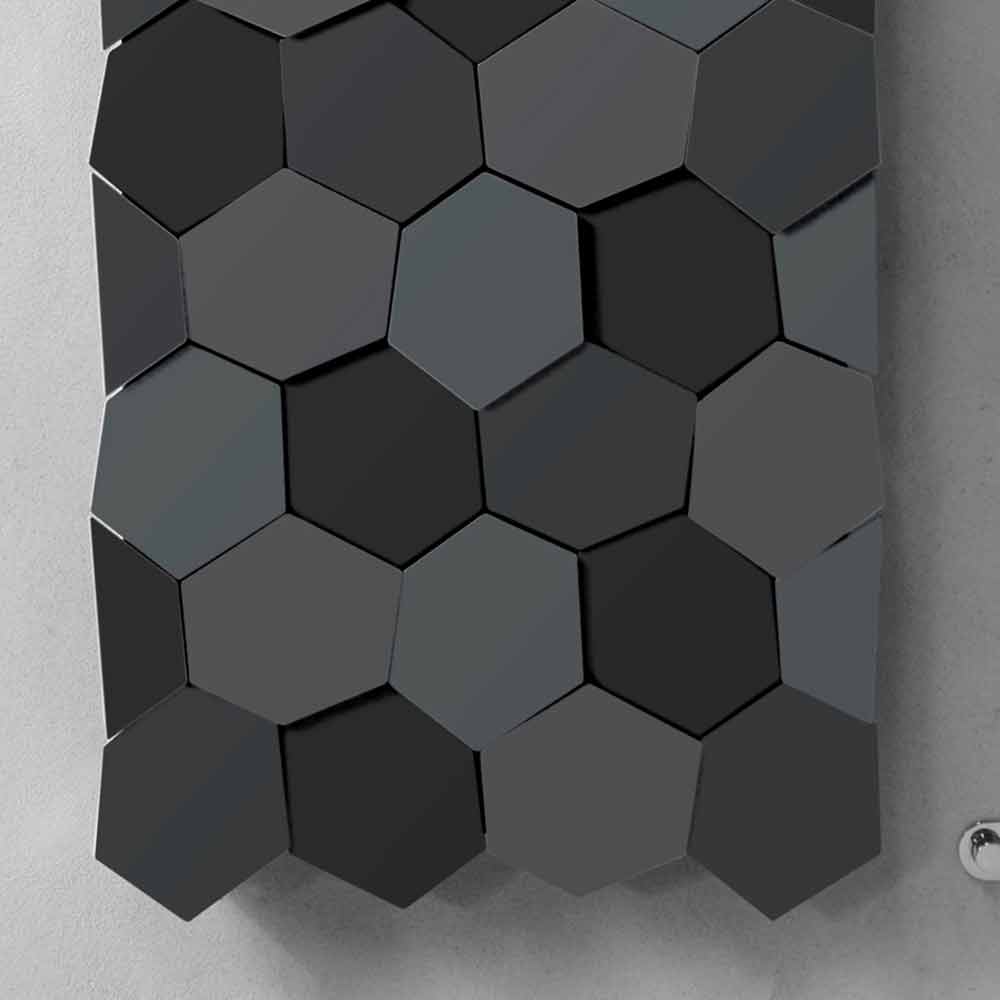 Hydraulický vertikální nástěnný radiátor moderního designu z oceli s šestiúhelníky, vyrobený v Itálii.