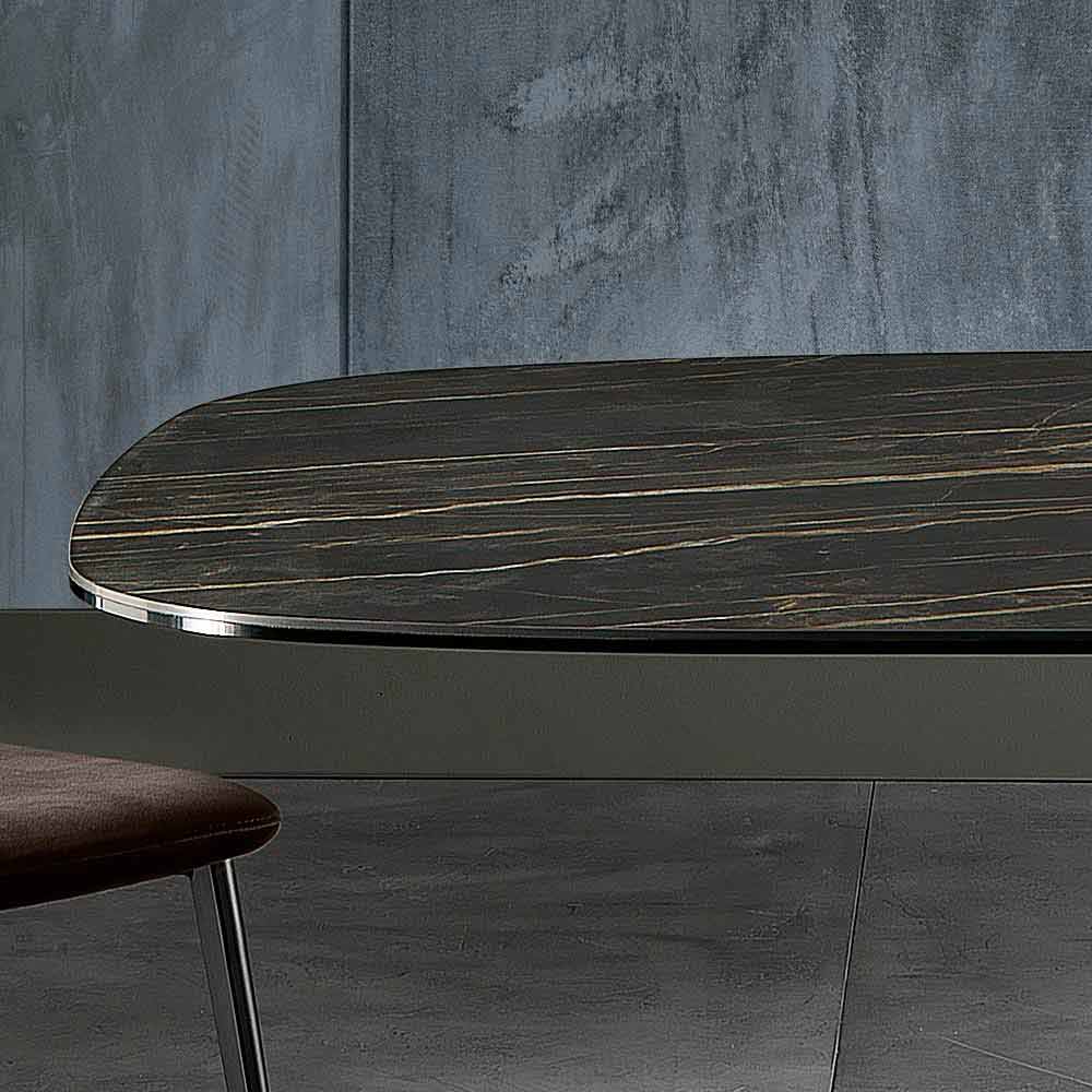 Clark je stálý stůl realizovaný v Itálii s oválným povrchem ze sklokeramické a polyuretanové základny.
