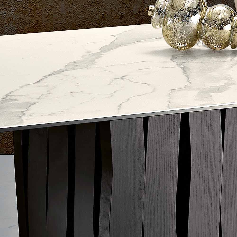 Díky kombinaci sklokeramiky a dřeva se jedná o dokonalý kus nábytku pro všechny vaše prostory.
