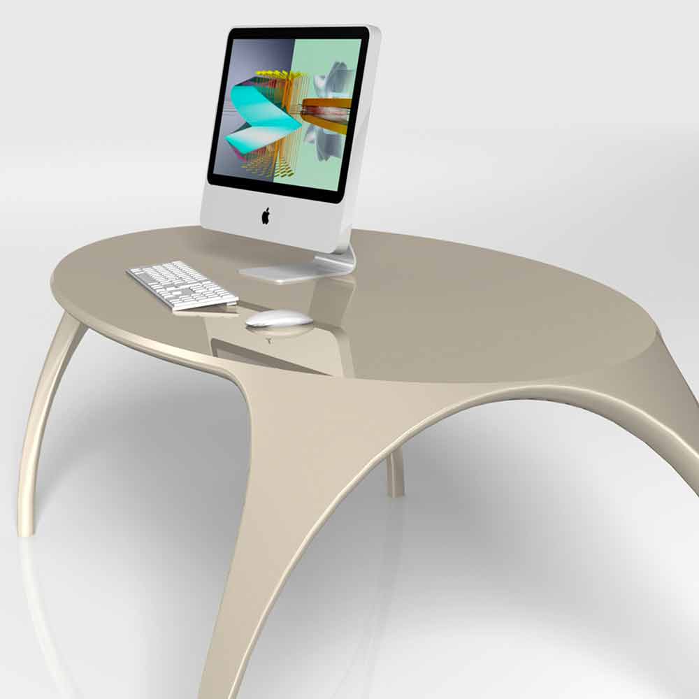 Pomposa je psací stůl eleptického tvaru vyznačující se elegantním, moderním a lehkým designem.