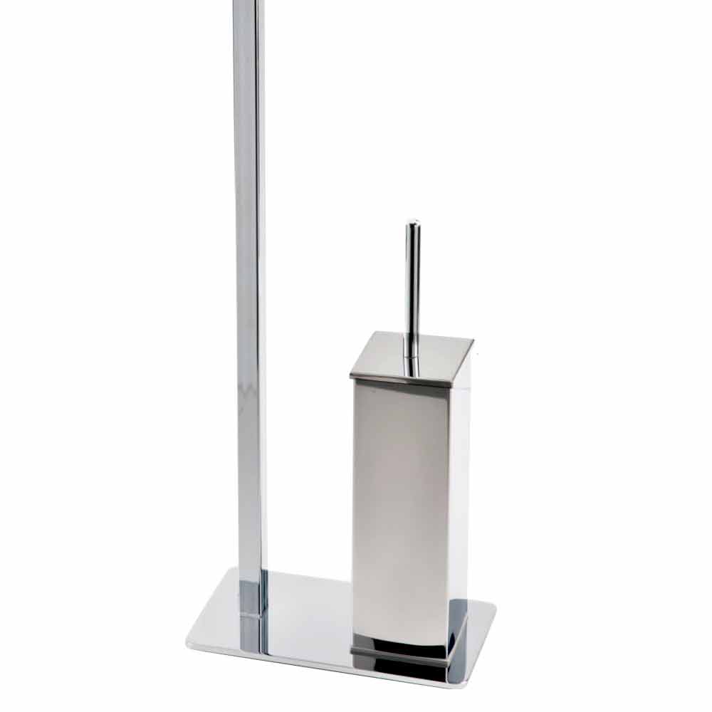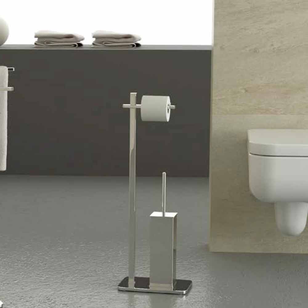 Moderní volně stojící role a toaletní kartáč z chromovaného železa Vyrobeno v Itálii.