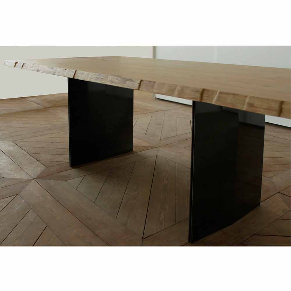 Paul pevný stůl je charakterizován dřevěnou špičkou ze světlého dubu, nepravidelným tvarem a barvami, stejně jako příroda vytváří. Suterén v surové černé tabuli s olejem.