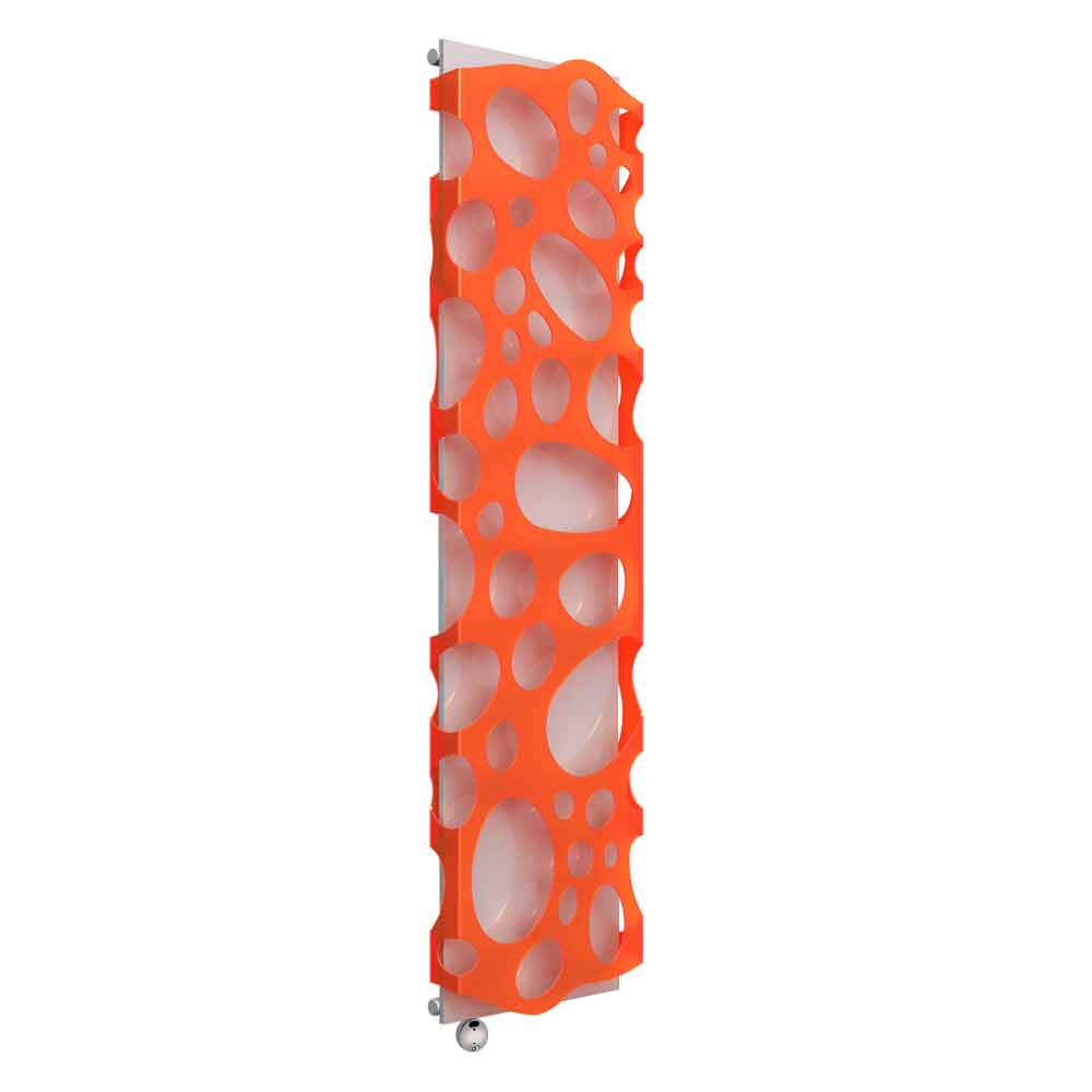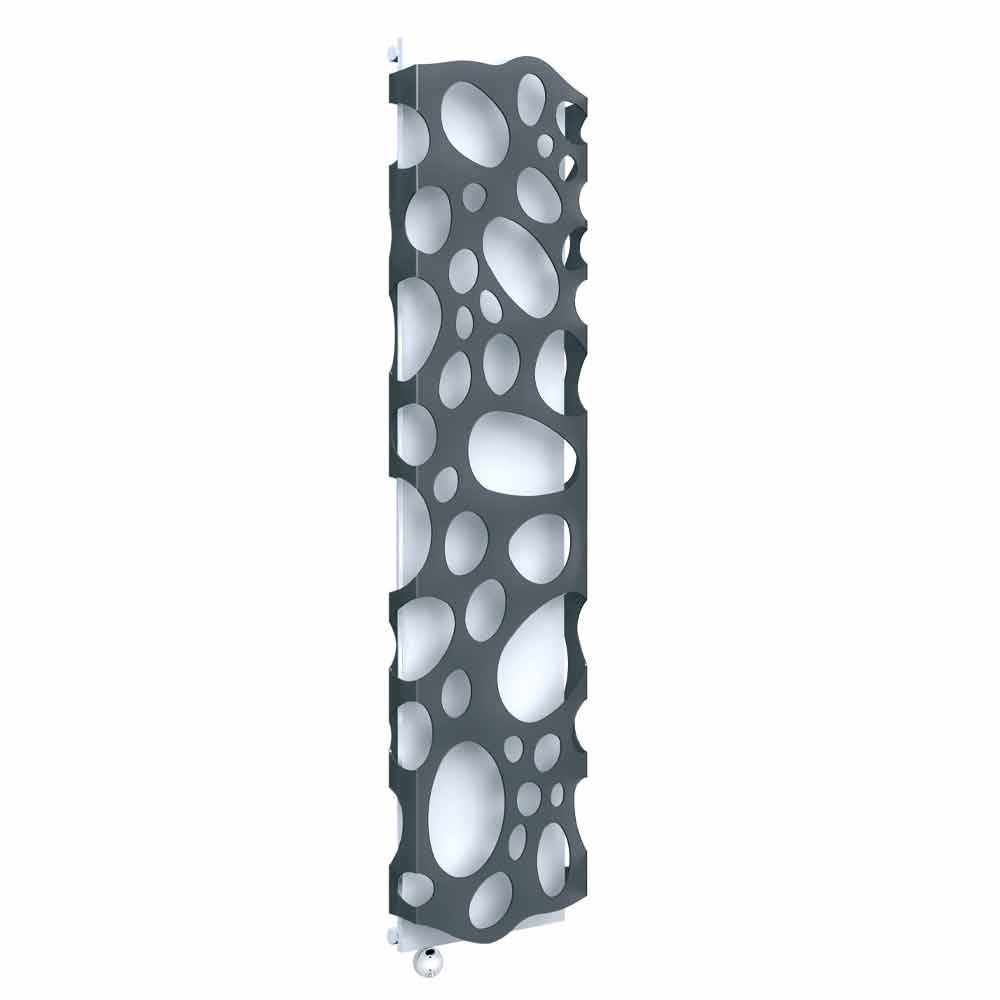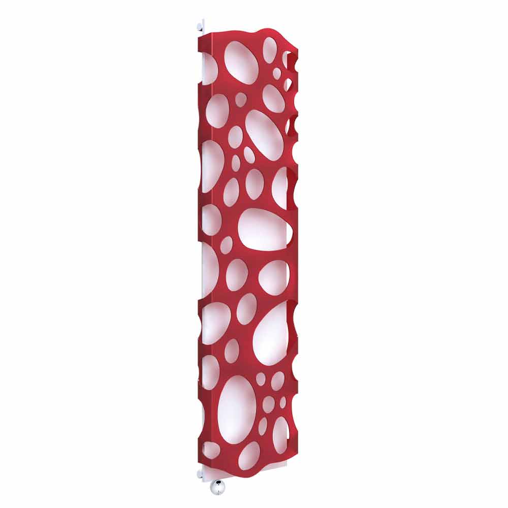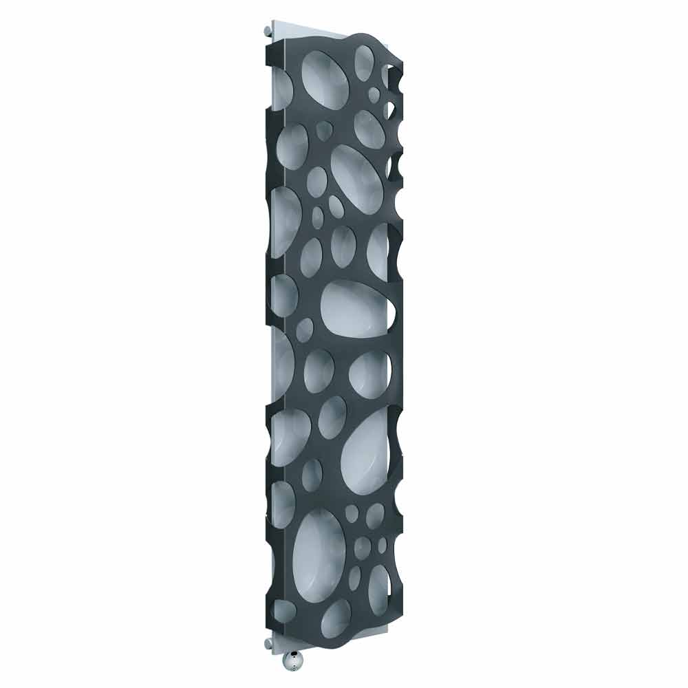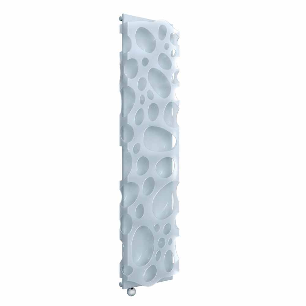 Moderní vertikální elektrický designový nástěnný radiátor z oceli a methakrylátu vyrobený v Itálii.