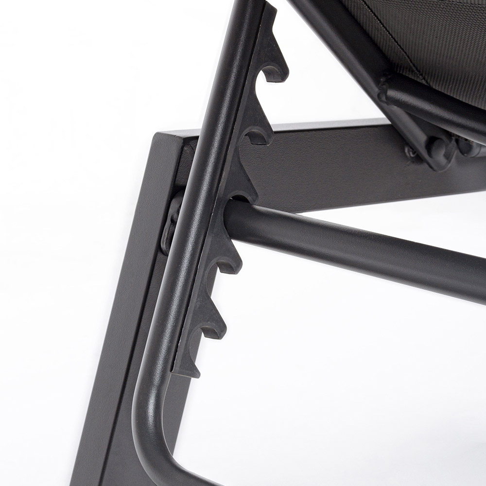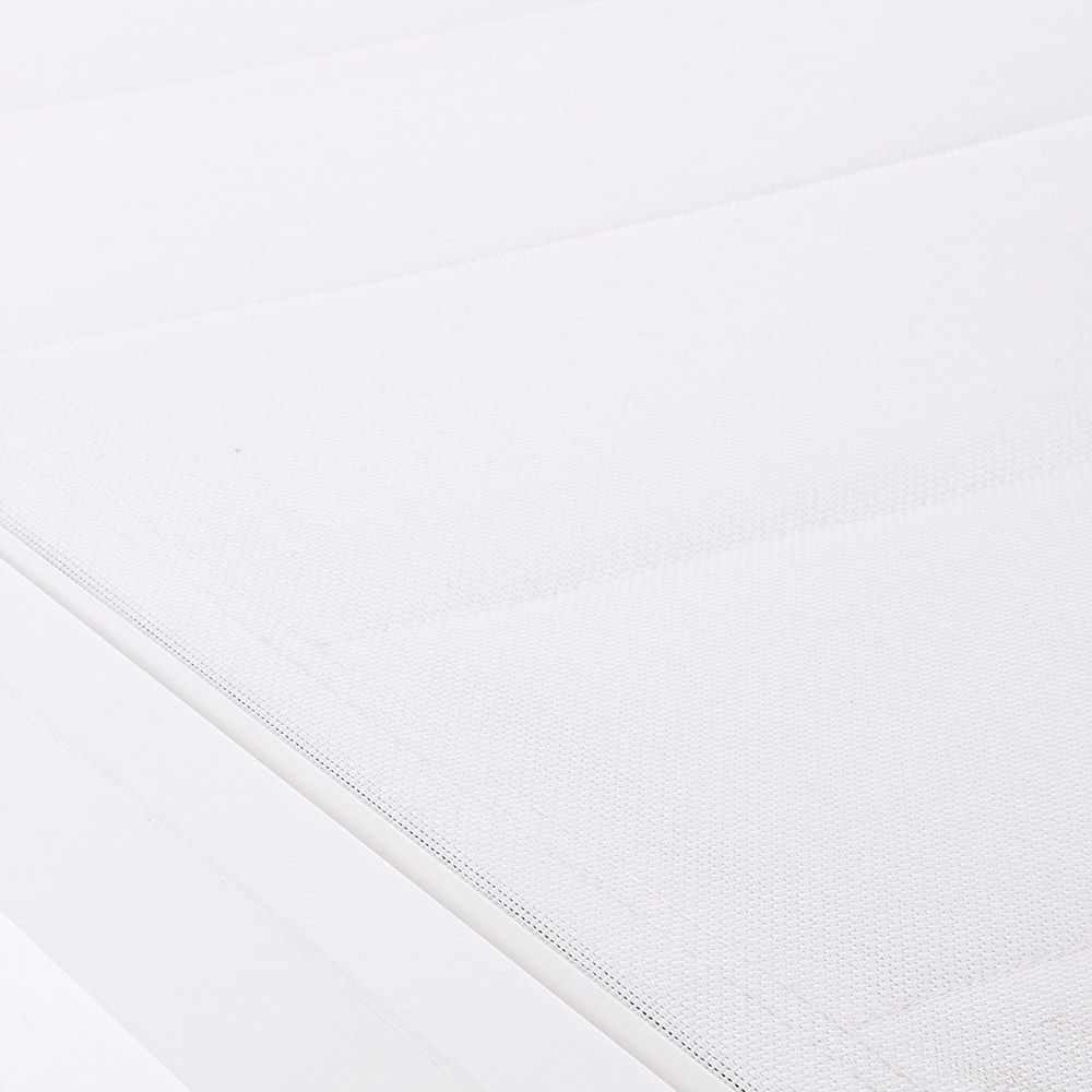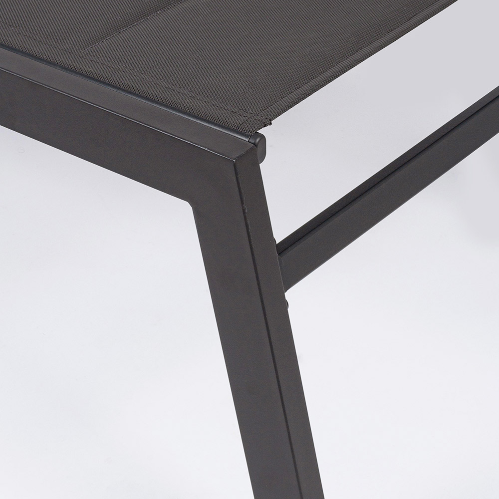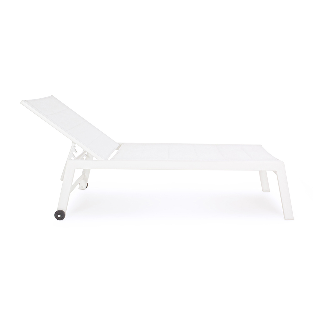 Zahradní design lehátko vyrobené z hliníku a vybavené kolečky pro venkovní použití.