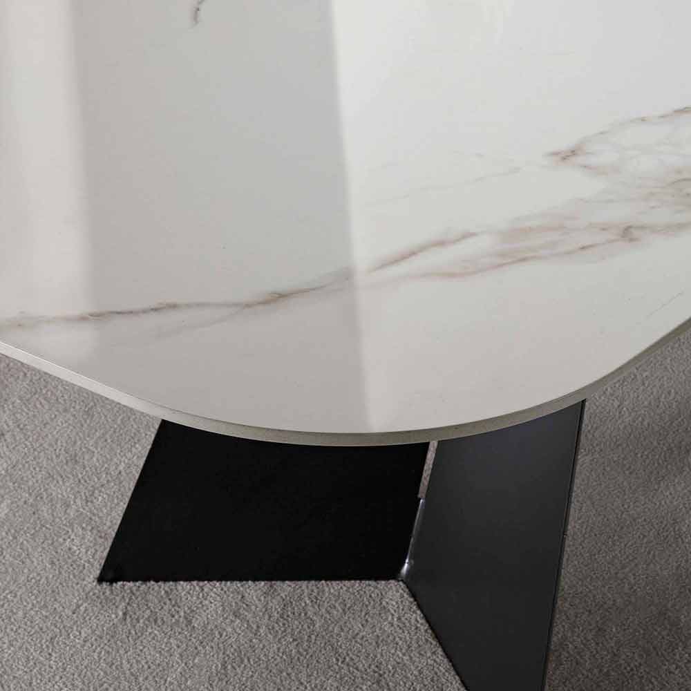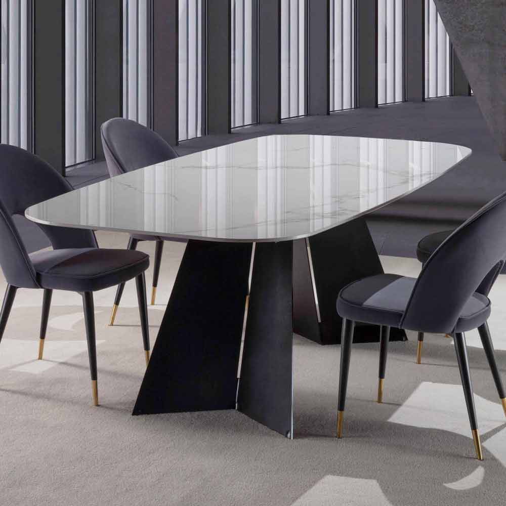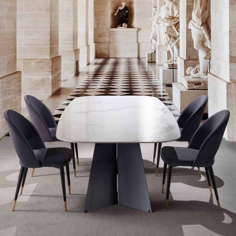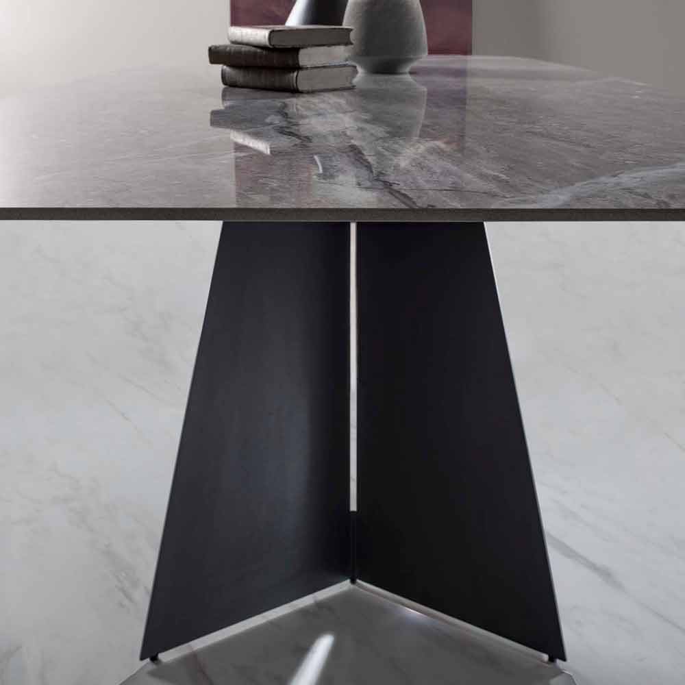 Ocelový jídelní stůl s porcelánovou kamenina.