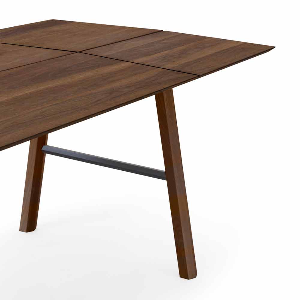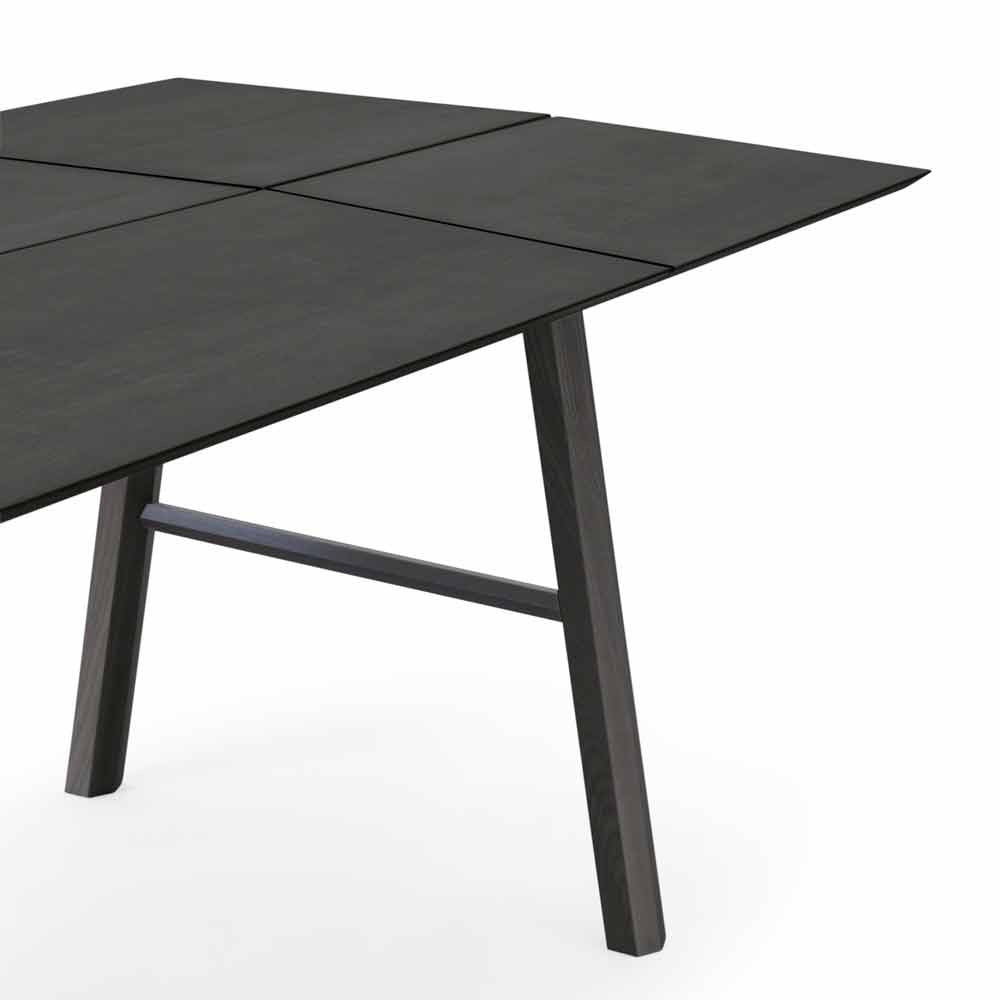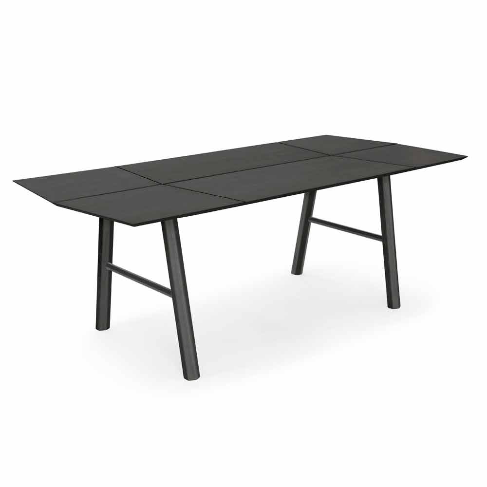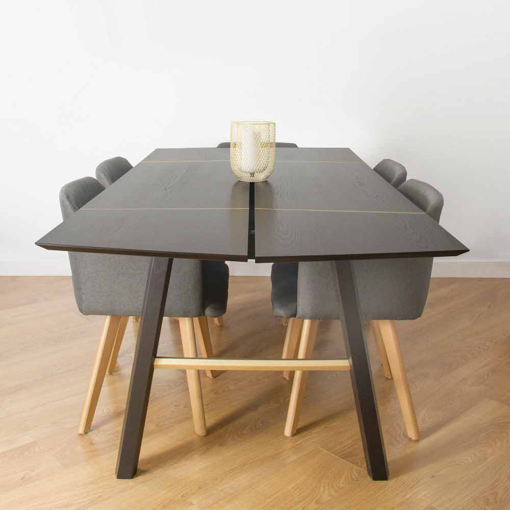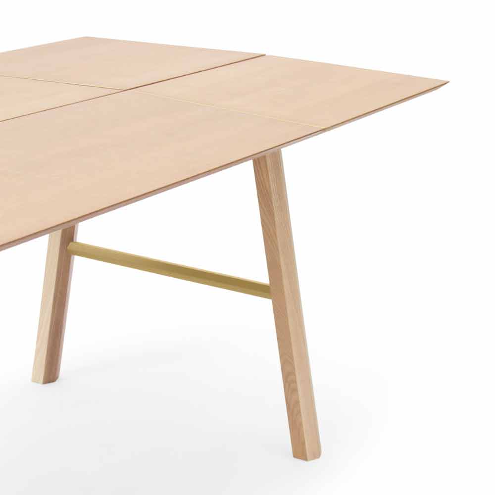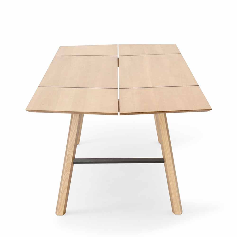 Moderní jídelní stůl z masivního jasanového dřeva s dýhovanou deskou.