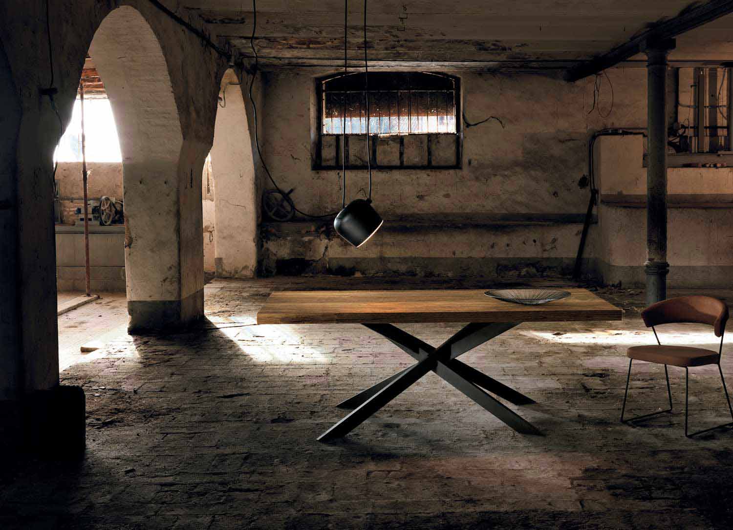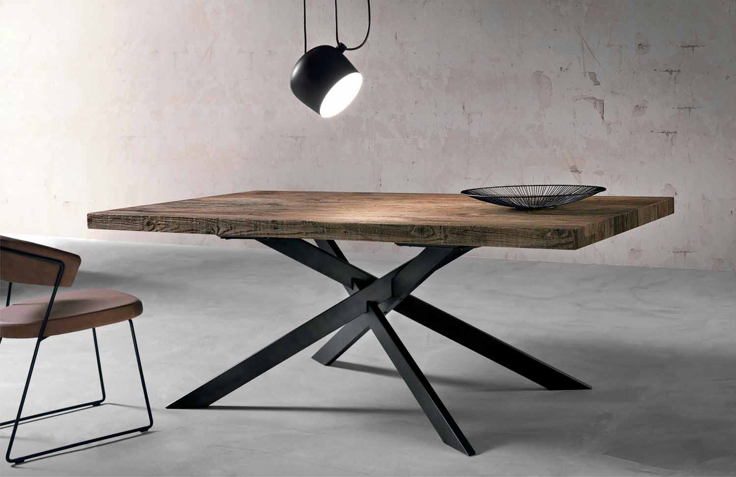 jídelní stůl vyznačující se moderním a robustním designem s jednoduchými a jemnými liniemi.