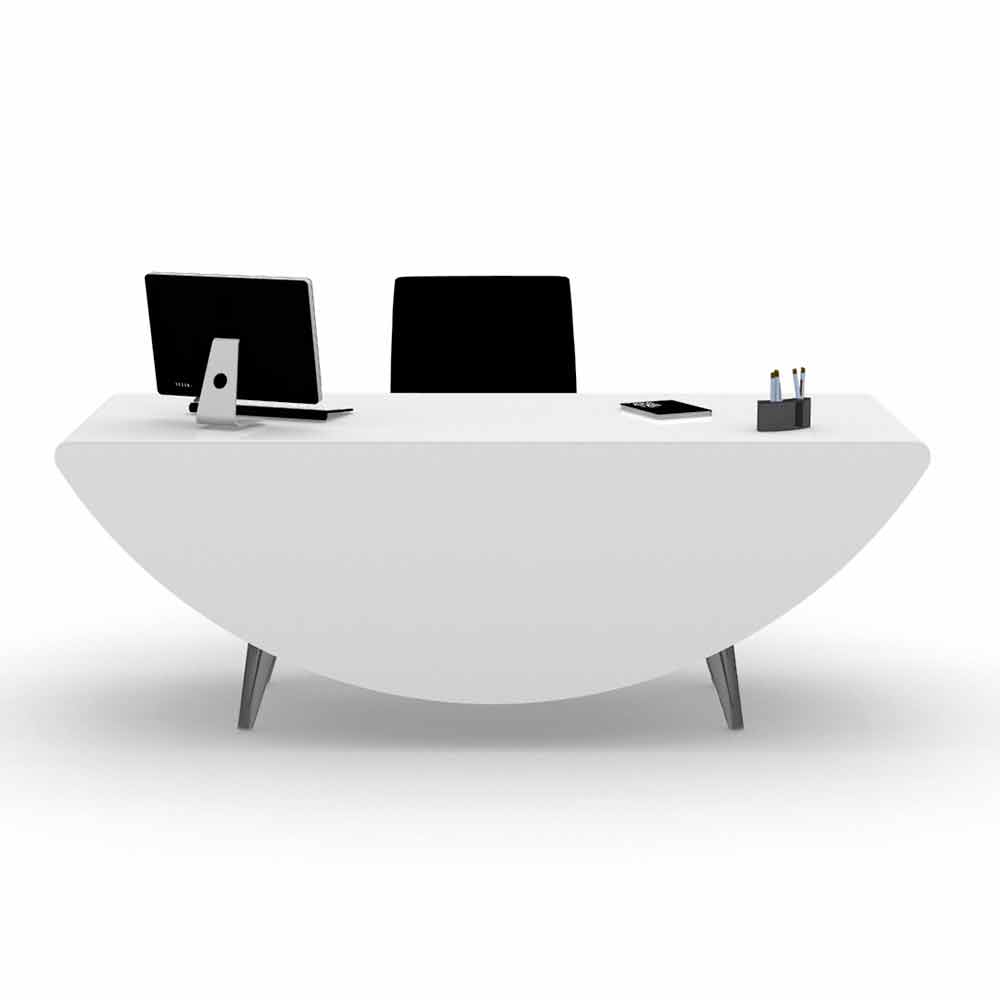 Milis je fantastický kancelářský stůl, který svým tvarem půlměsíce velmi připomíná budík z 50. let.