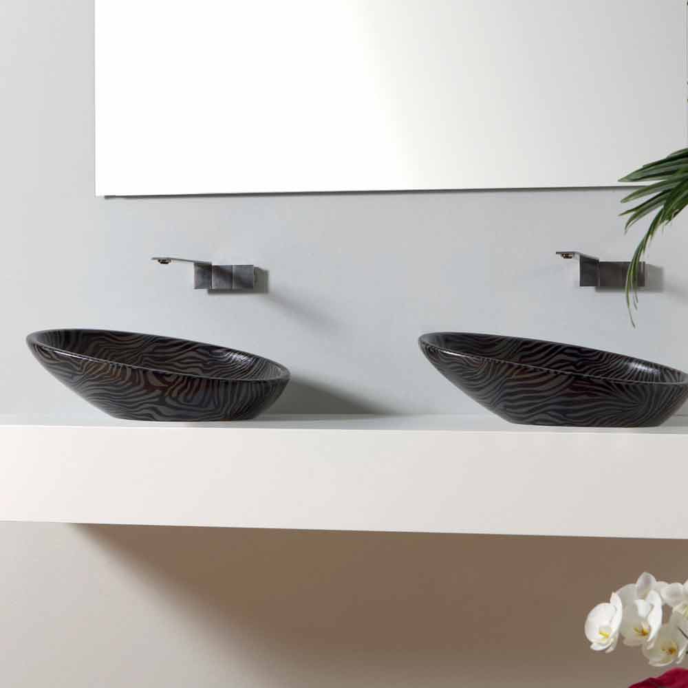 Glossy je umyvadlo na desku vyrobené v Itálii mistrovskými řemeslníky v keramice se stříbrnou povrchovou úpravou zebra.