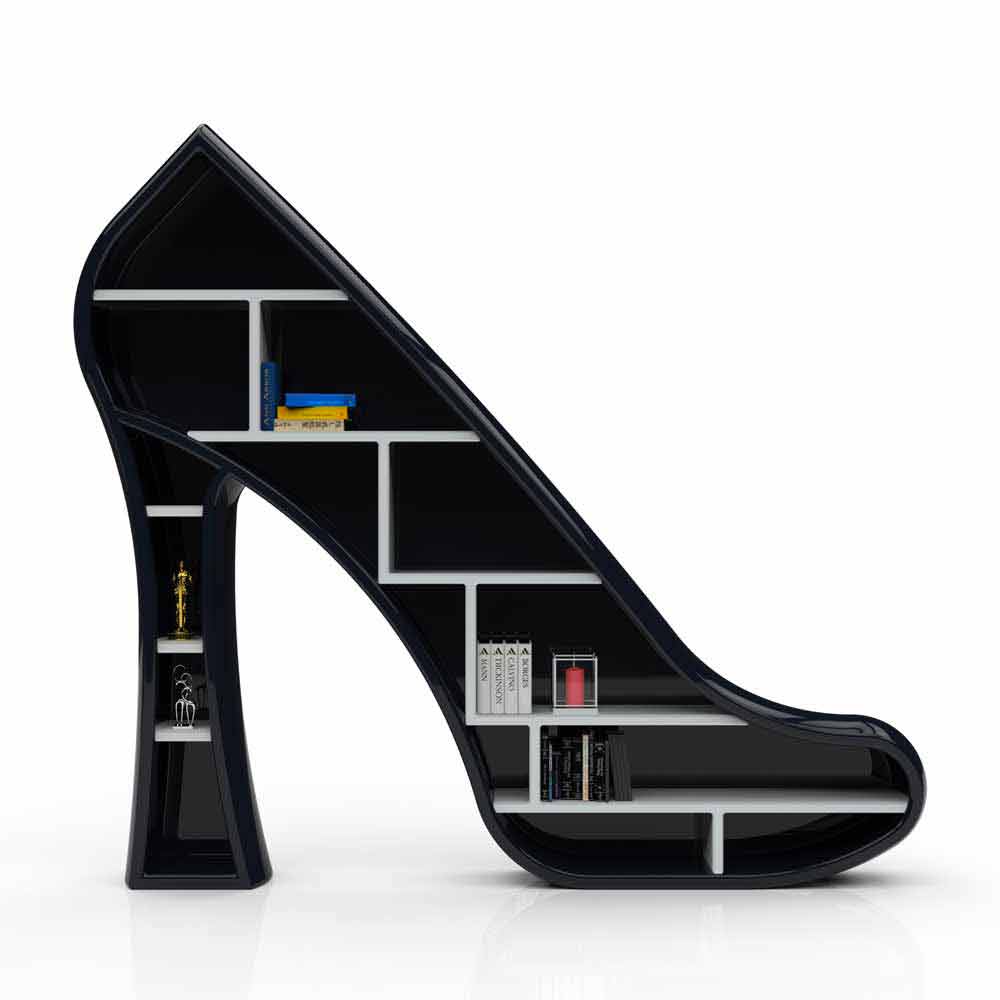 Designový předmět nebo rozmar? Knihovna Lady není nic jiného než transpozice směrem k designu ženského předmětu par excellence: boty s podpatkem.