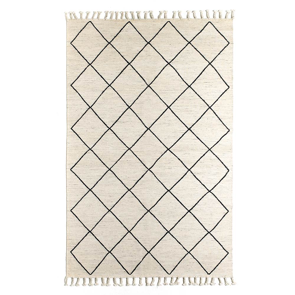 Moderní designový koberec do obývacího pokoje s geometrickým vzorem z vlny a bavlny.