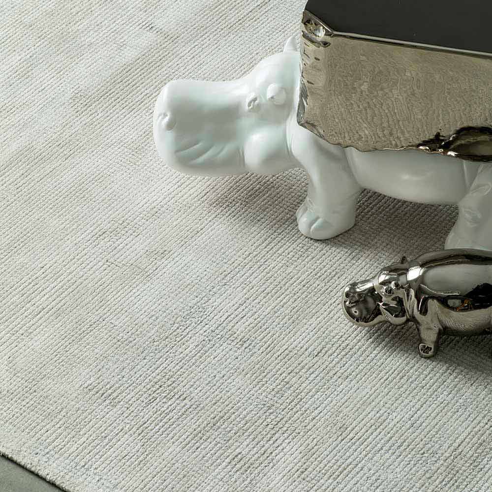 Moderní koberec do obývacího pokoje vyrobený z ručně tkané bavlny a viskózy.