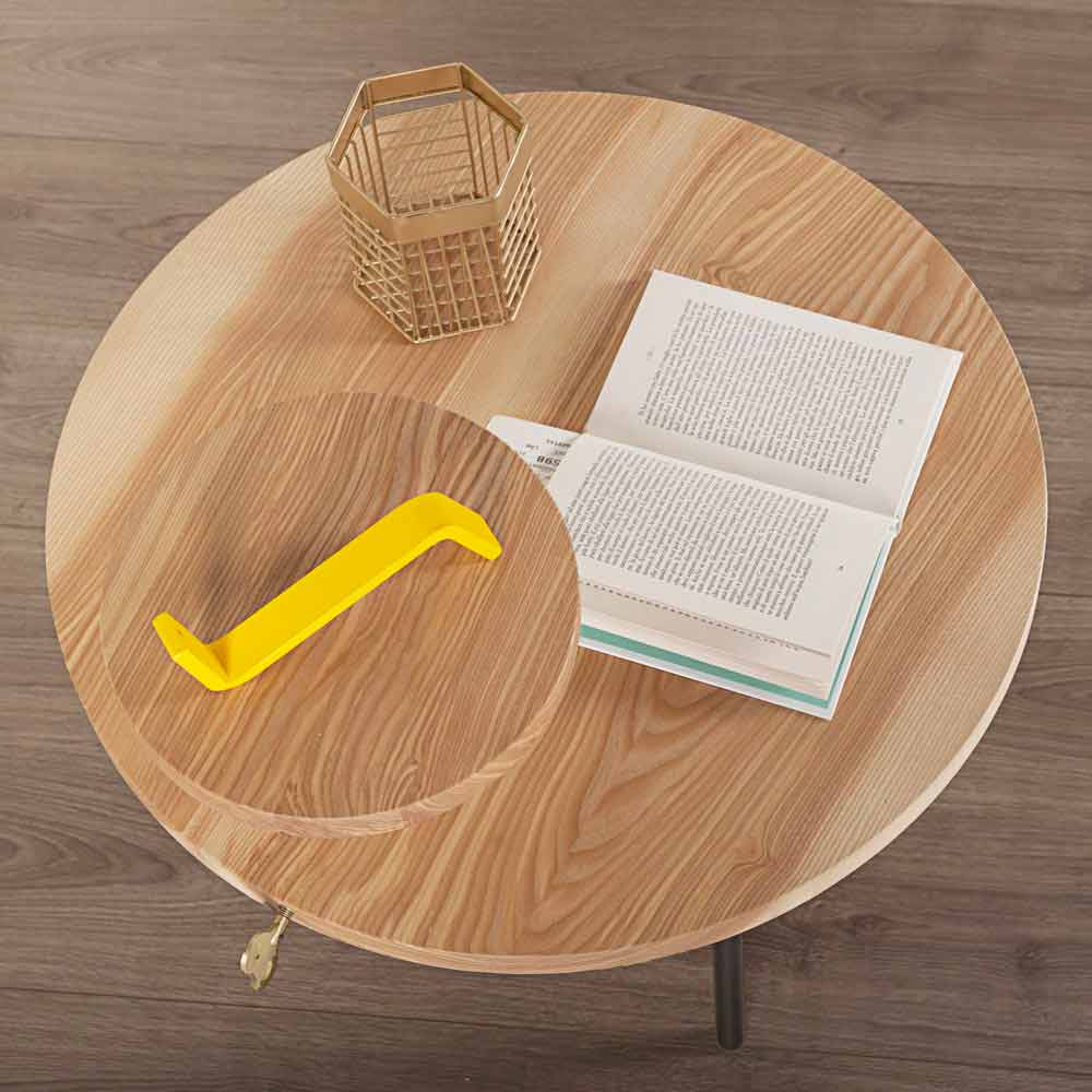 Designový konferenční stolek s kulatým jasanem a ocelovými nohami Made in Italy.