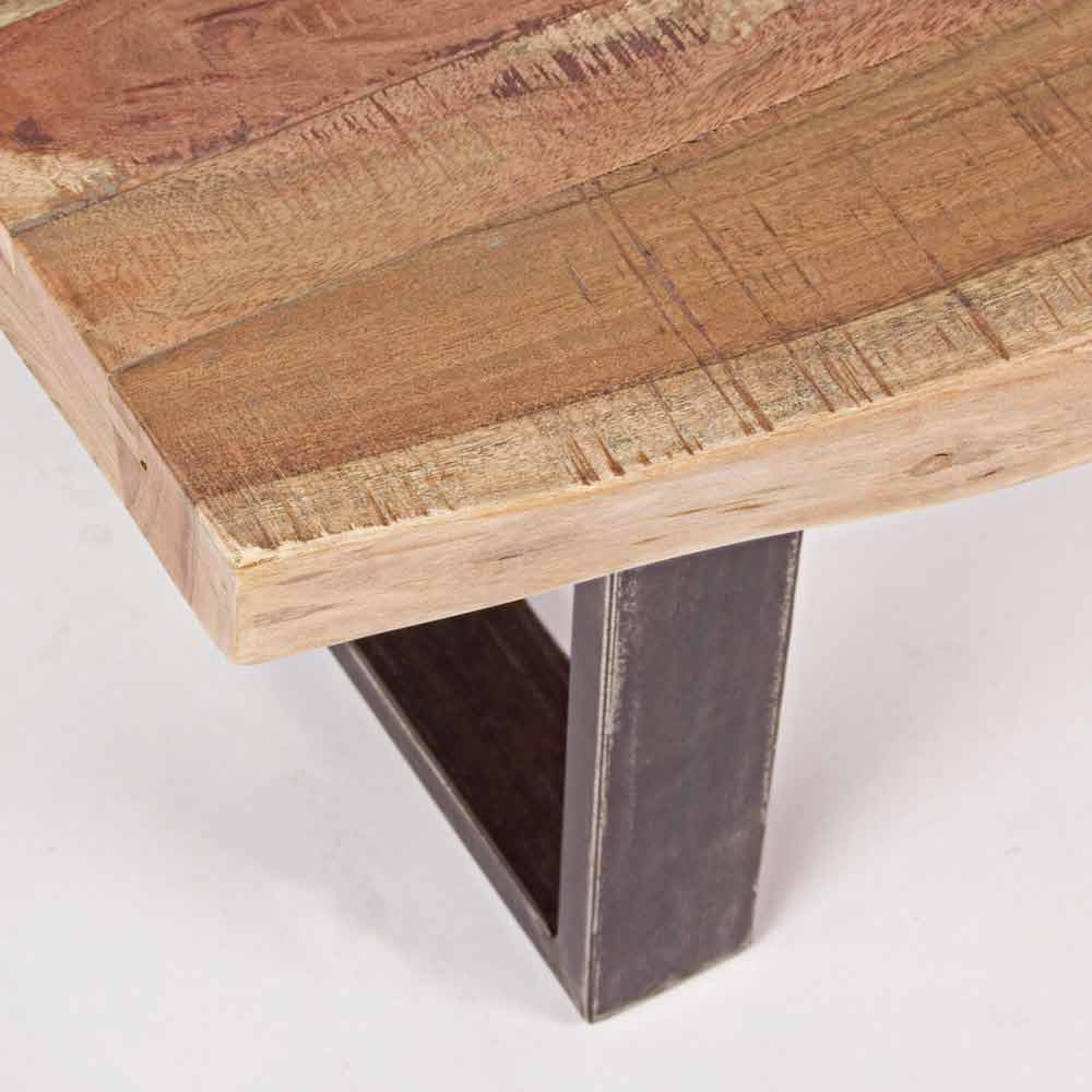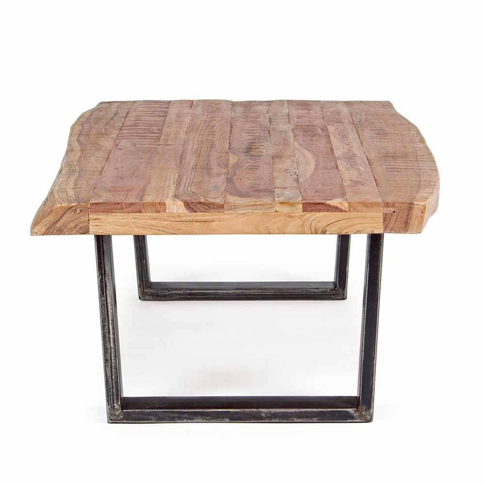 Konferenční stolek s povrchem z akátového dřeva a ocelovými nohami.