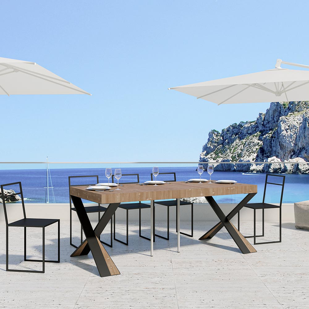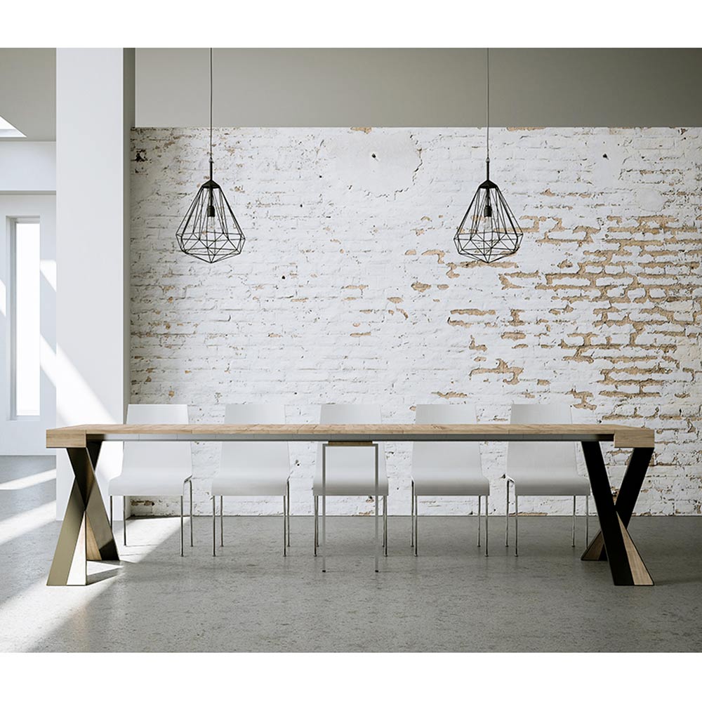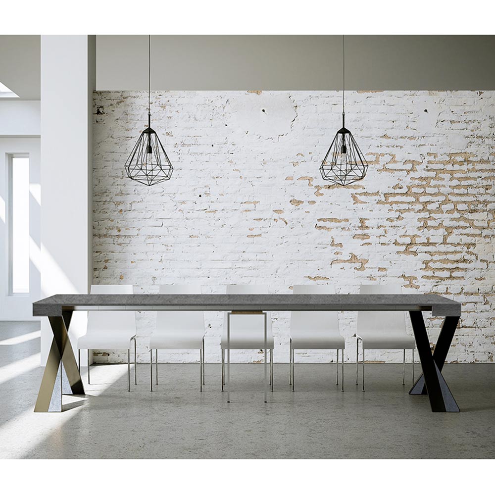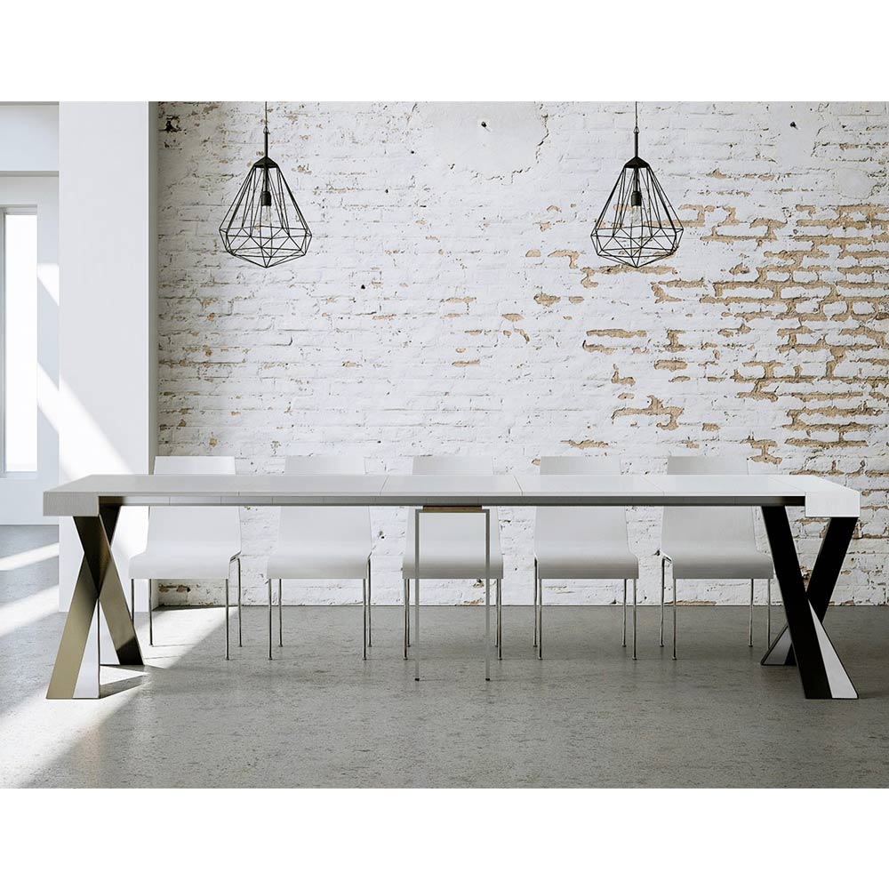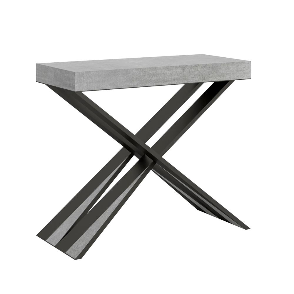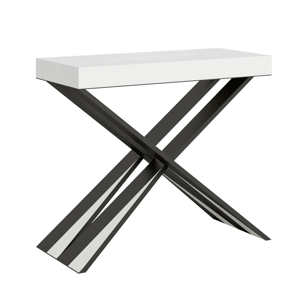 Tento rozkládací konzolový stolek ztělesňuje eleganci a funkčnost v poutavém designu. É se vyznačuje moderní siluetou s X podnoží, která nejen poskytuje pevnou oporu, ale také dodává nádech sofistikované originality. Horní deska z čalouněného dřevaè hold kvalitě vyrobeno v Itálii, ceněné pro svou odolnost a schopnost odolávat běhu času.