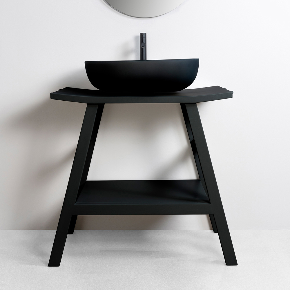 Moderní koupelnová skříňka z matného černého teaku se spodní policí - Crina