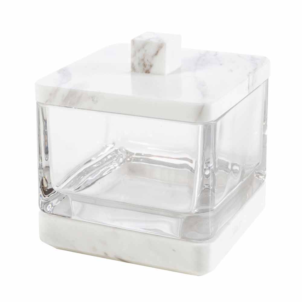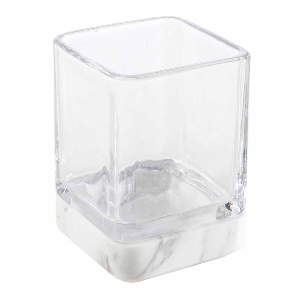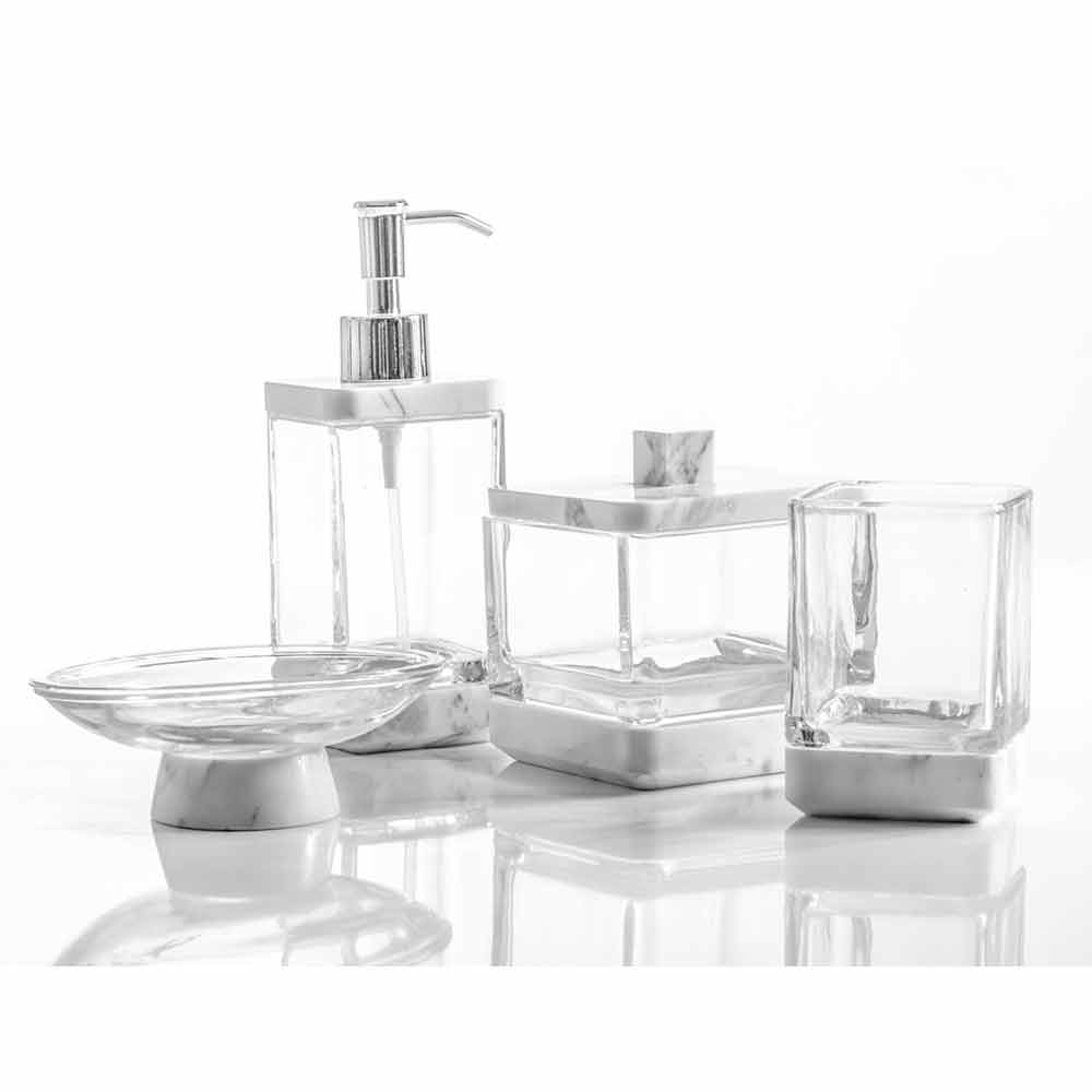 Moderní sada koupelnových doplňků z mramoru Calacatta a skla Carona