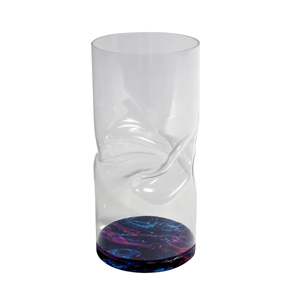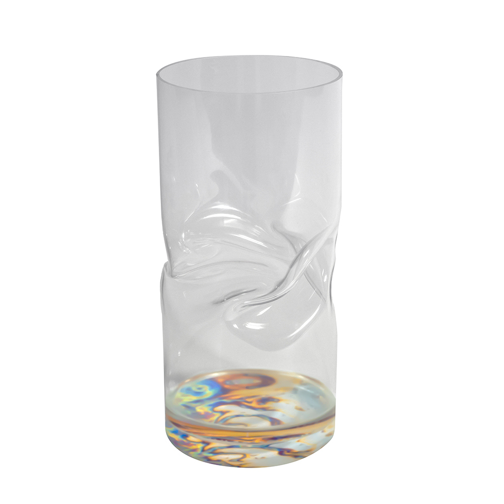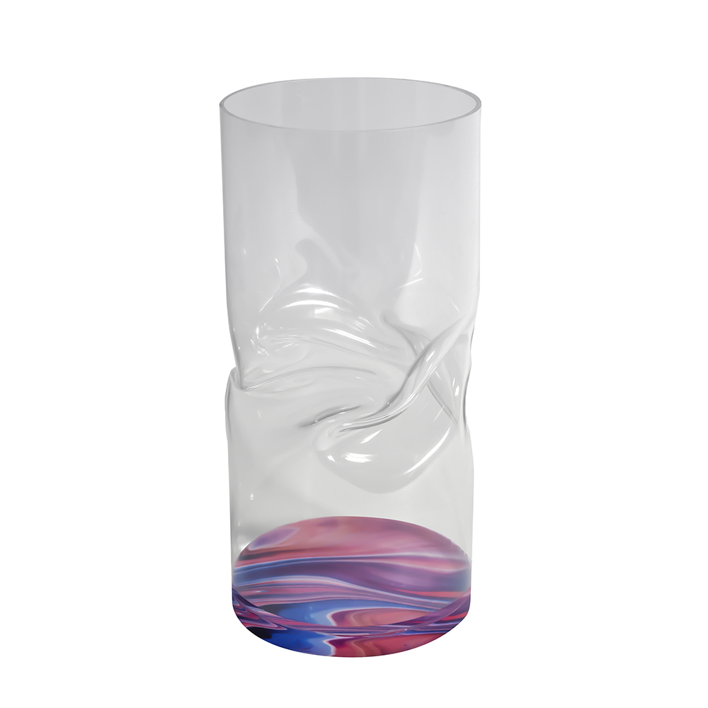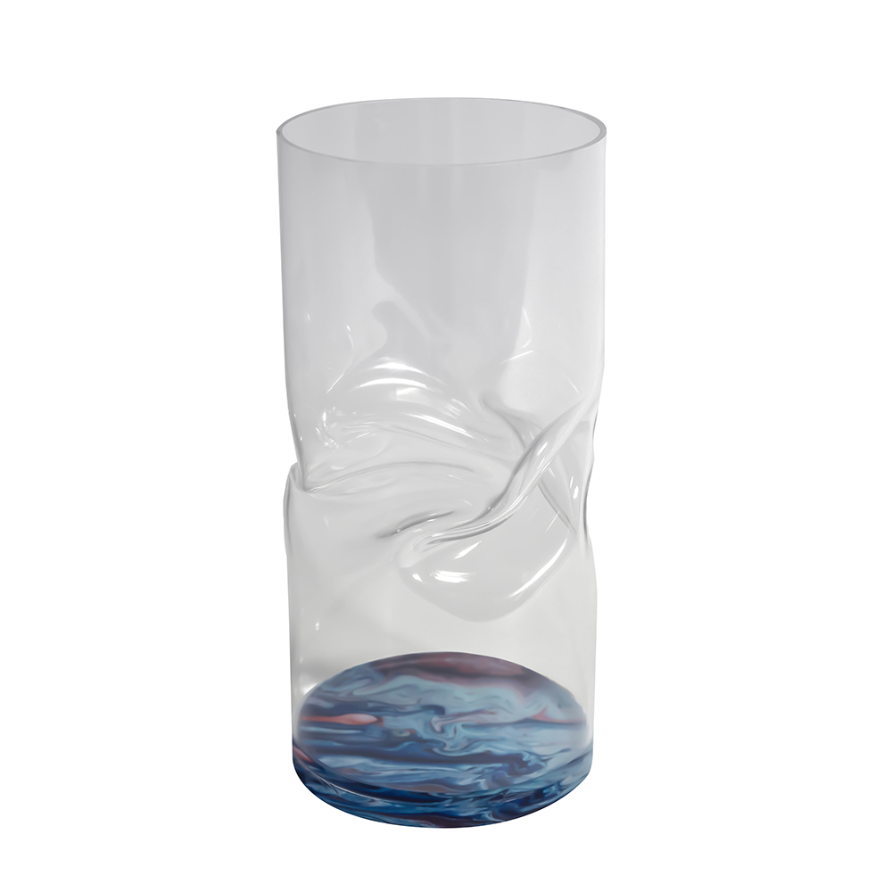 Designová váza z krouceného akrylového křišťálu s různými povrchovými úpravami vyrobená v Itálii.