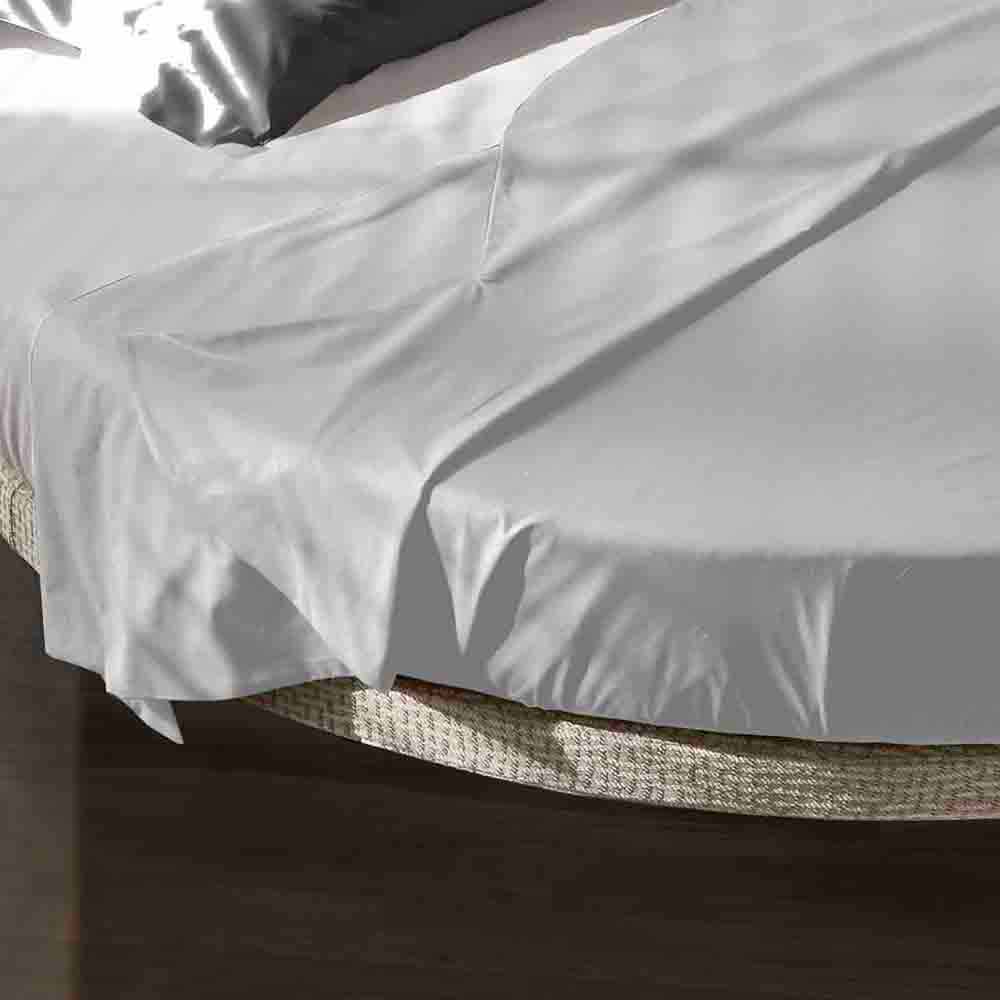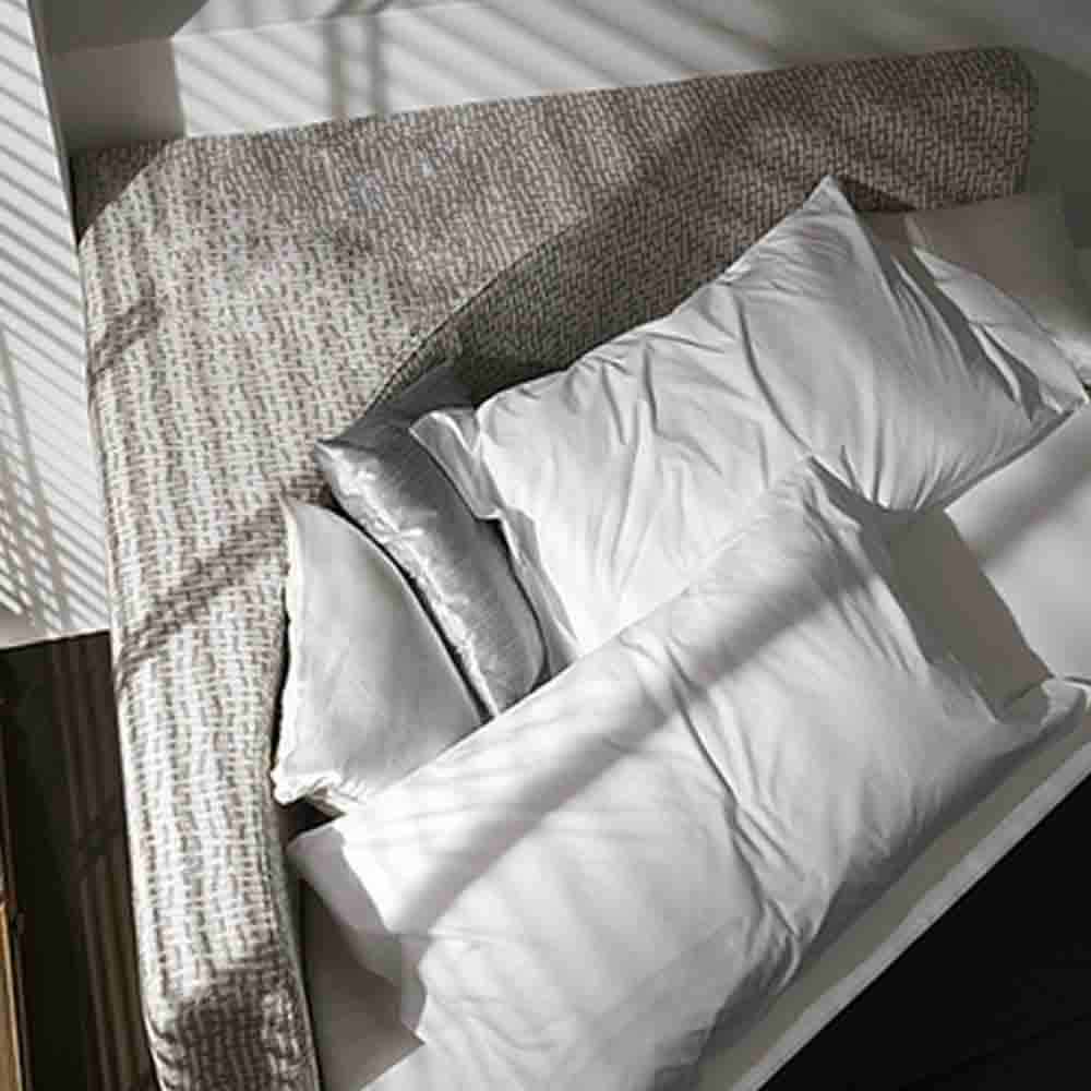 Kulatá manželská postel potažená látkou s rohovým čelem, design Made in Italy.