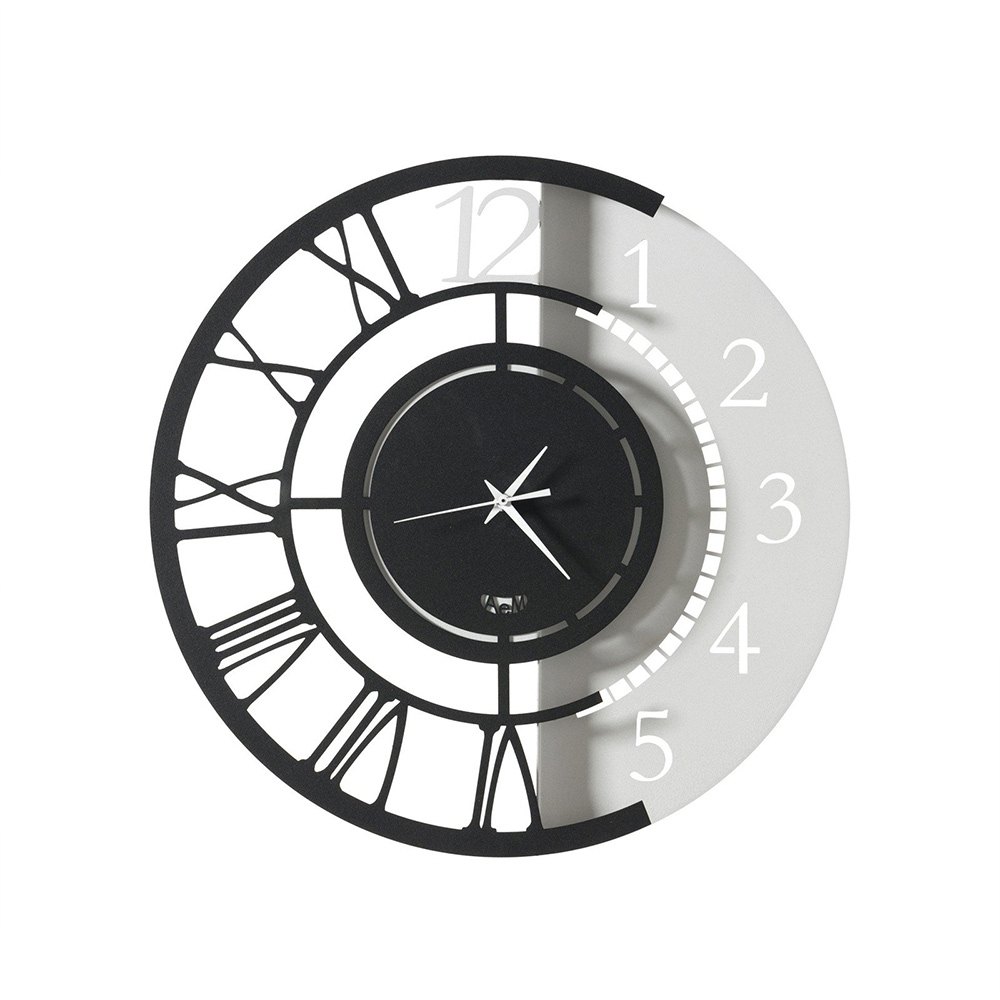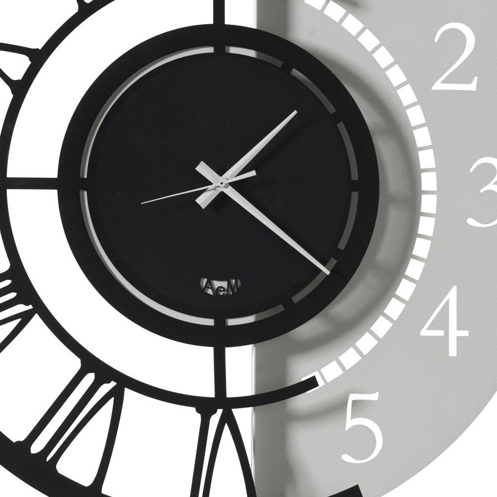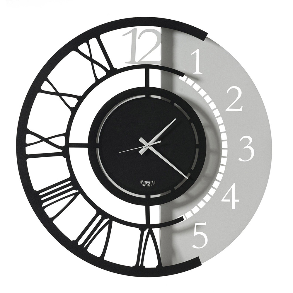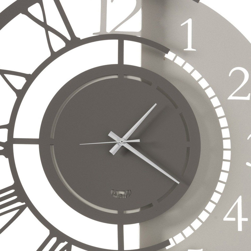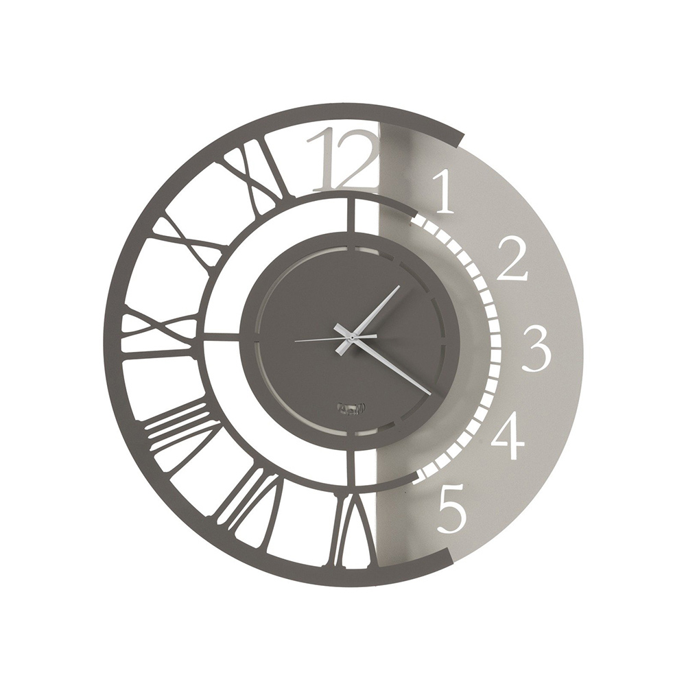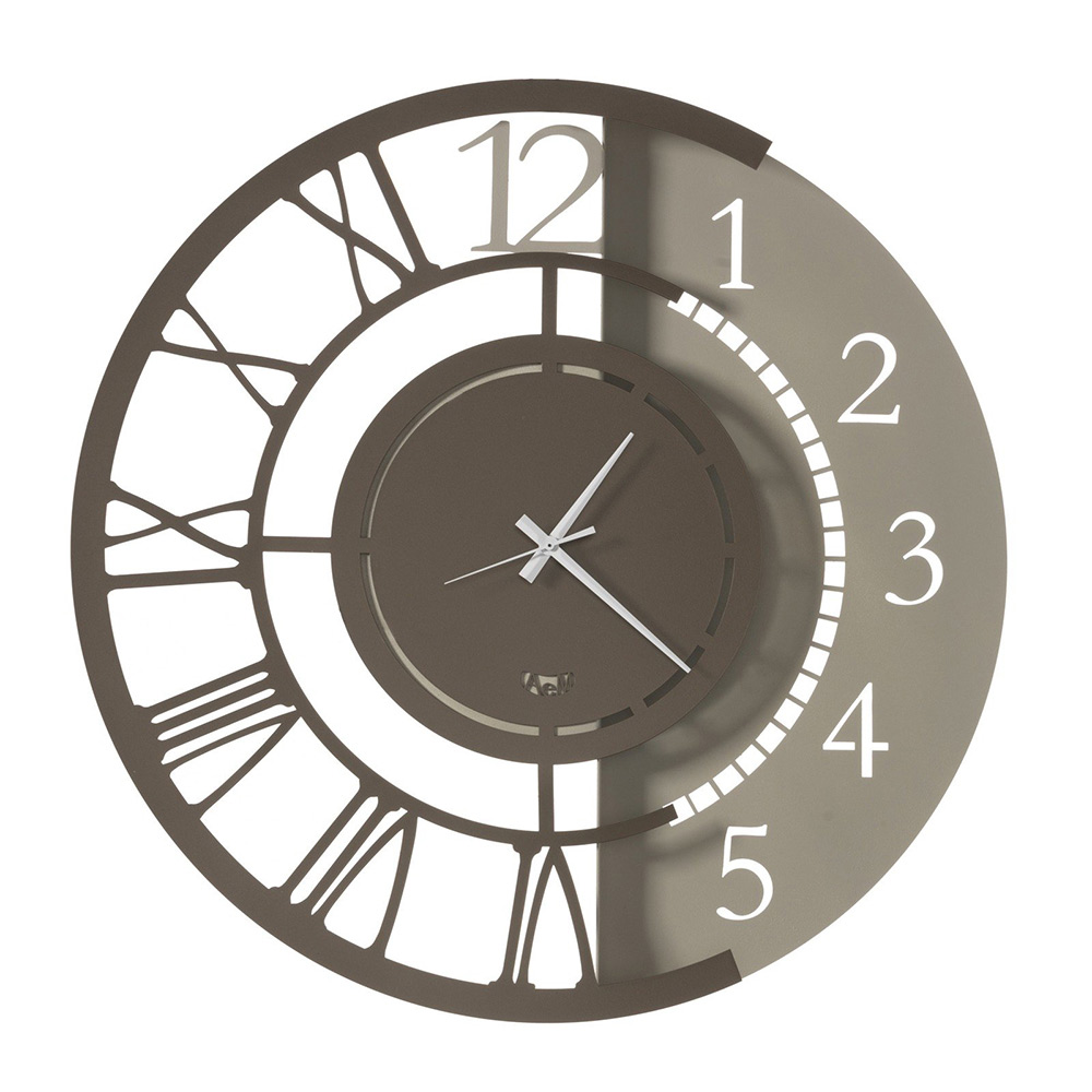 Železné nástěnné hodiny kulatého designu s dvojitým číslováním ve 2 velikostech a 3 povrchových úpravách vyrobené v Itálii.