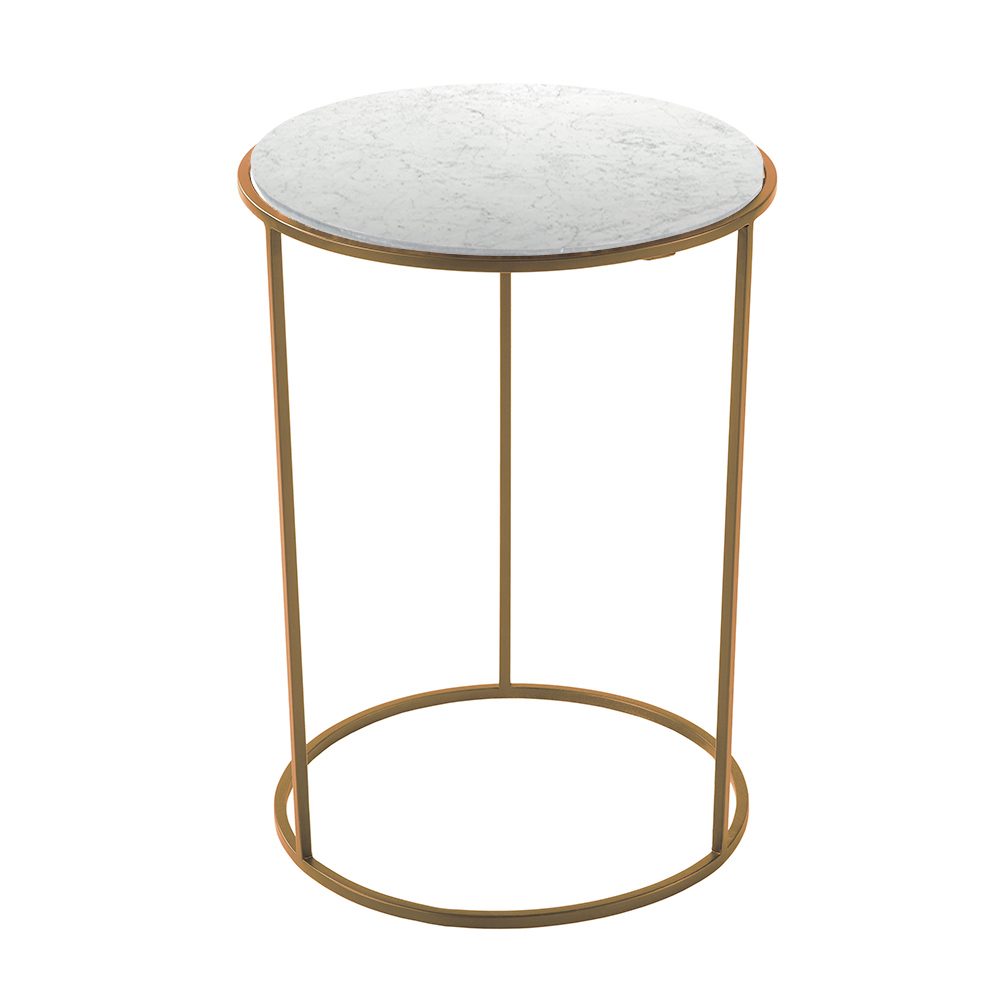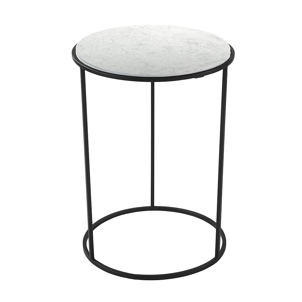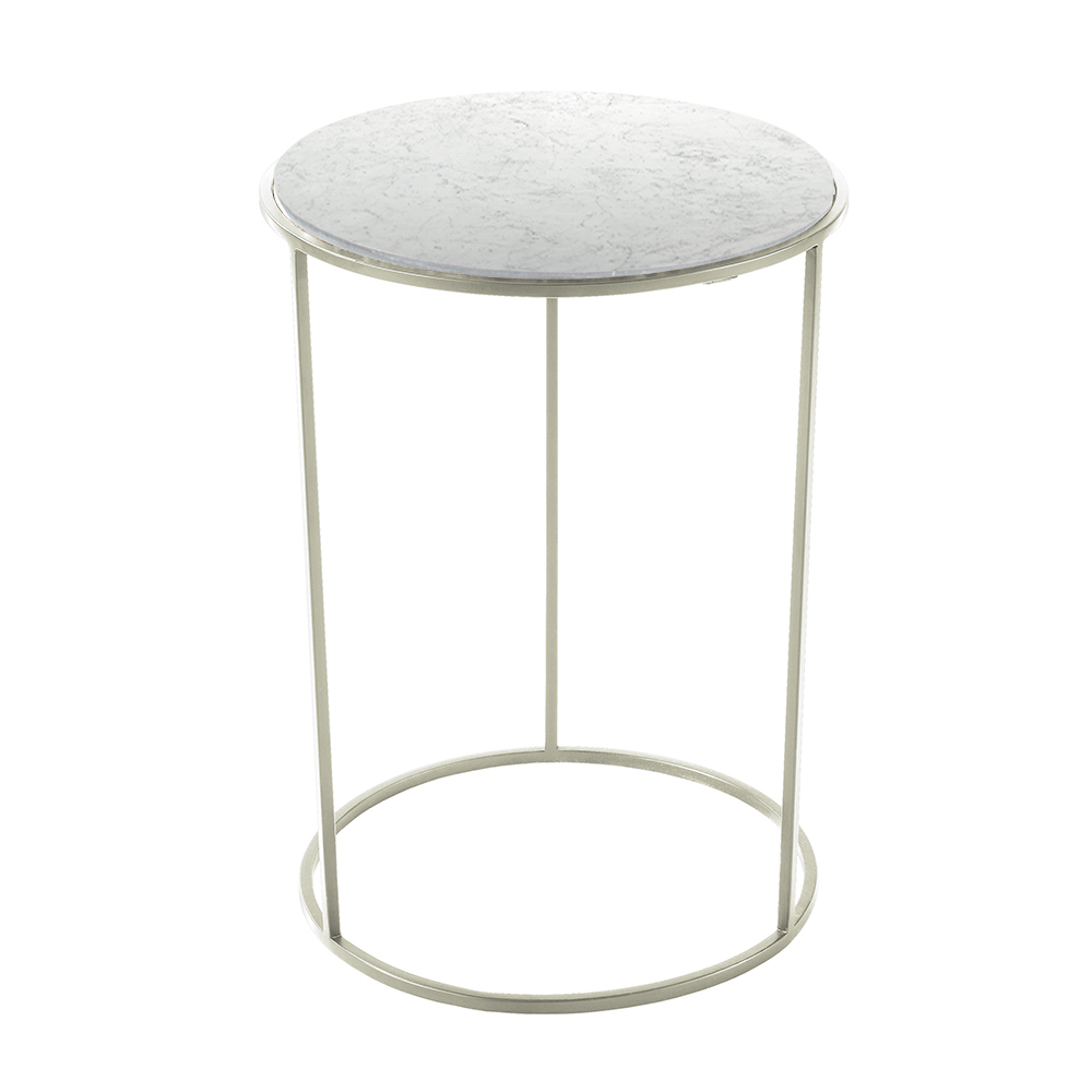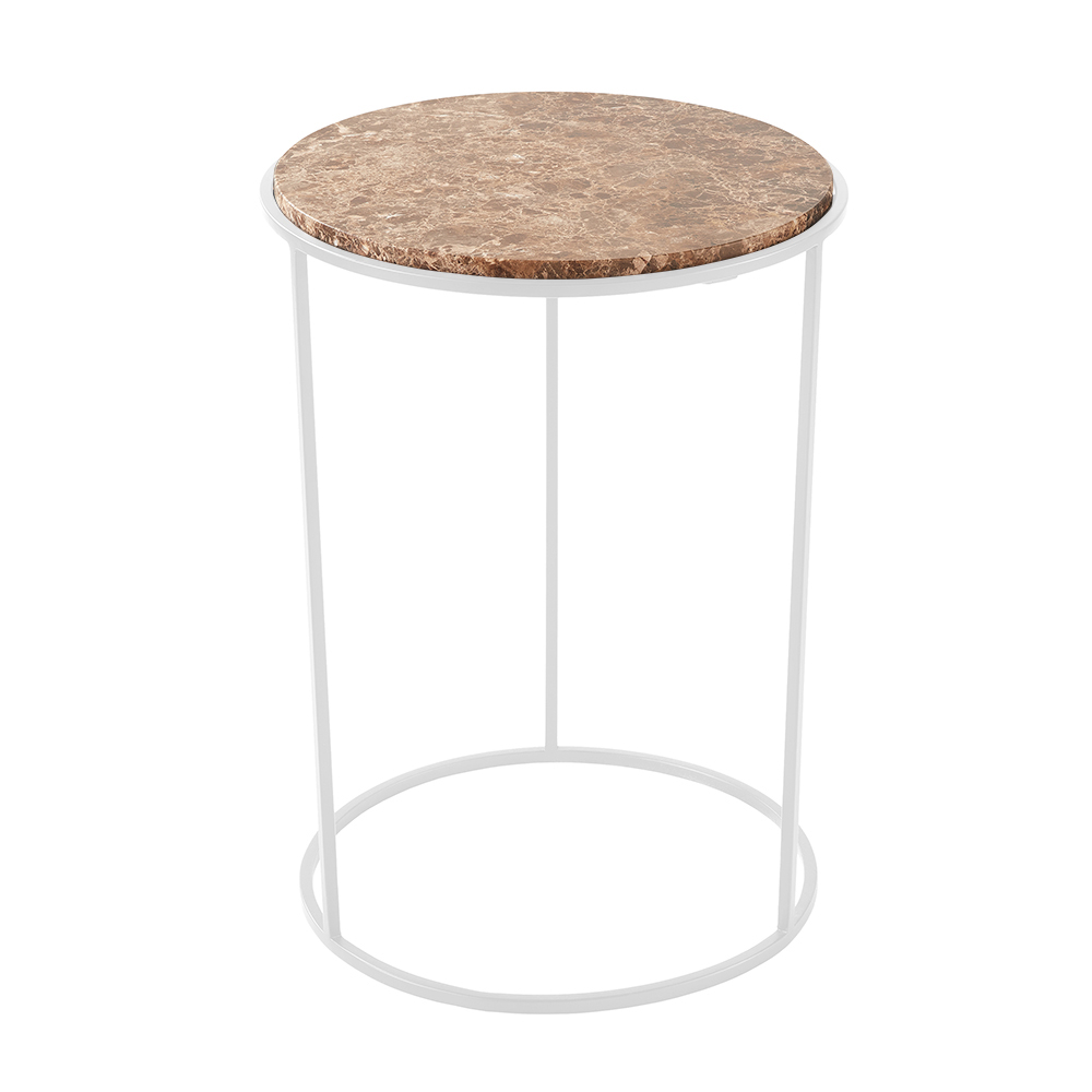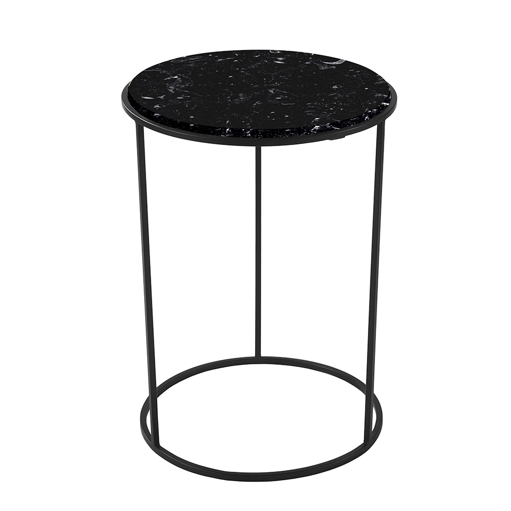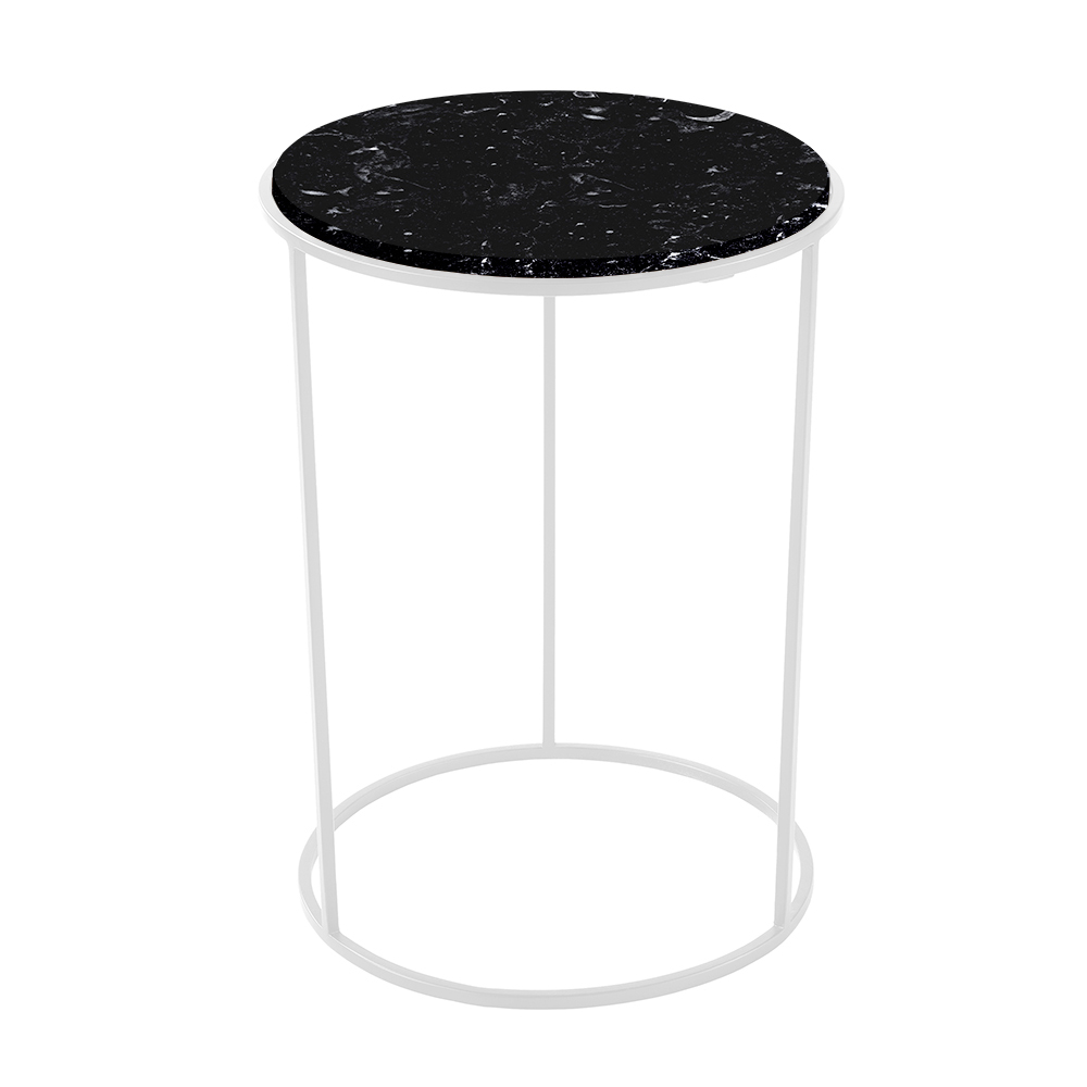 kulatý konferenční stolek s neprůhlednou mramorovou deskou, dostupný ve třech různých variantách, má minimální a zásadní linie.