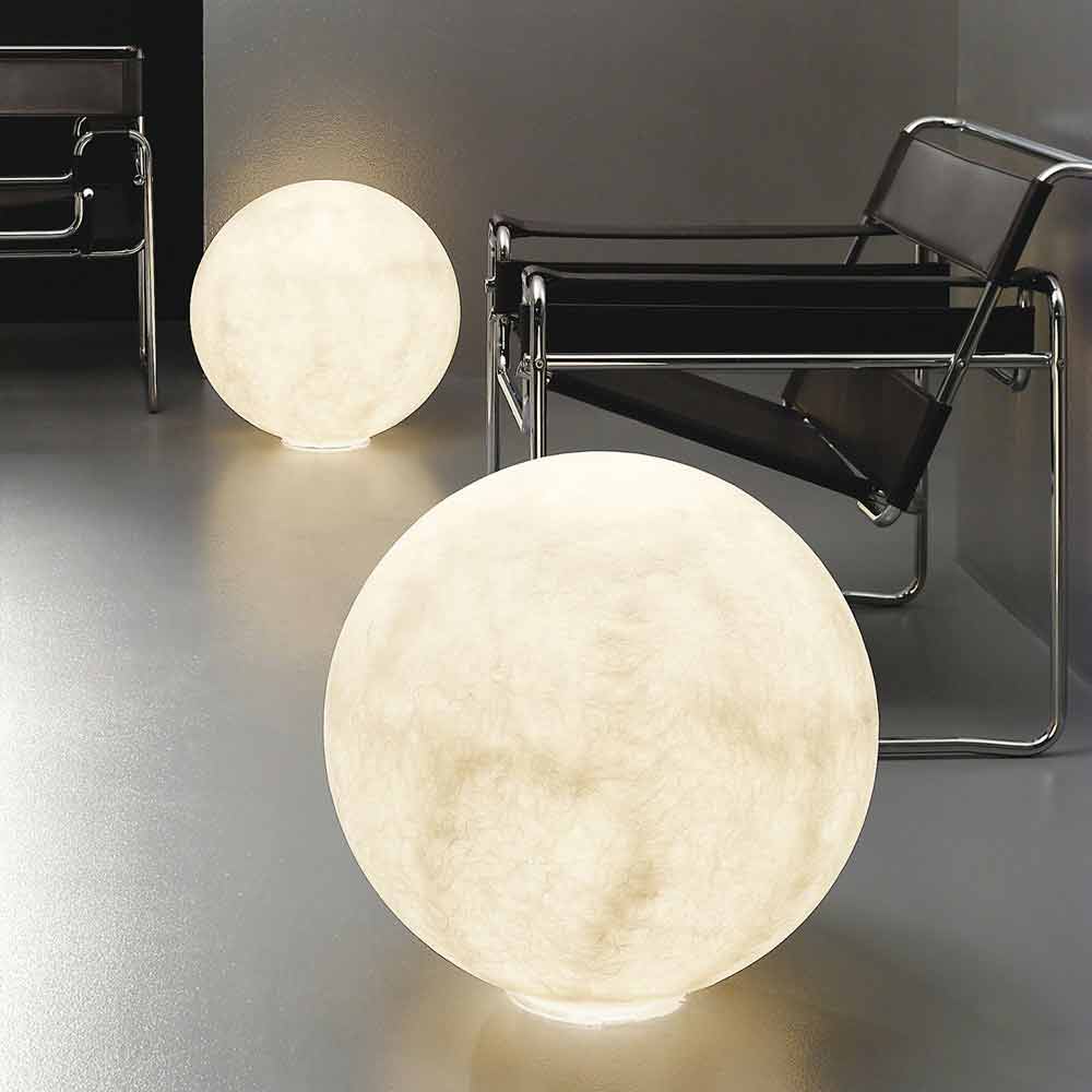 Vytvořený In-es.artdesign pro kolekci Luna, reprodukuje kouzelnou měsíční atmosféru, díky materiálu, z něhož je složen: Nebulite® , materiál složený z pryskyřice a vlákniny, jehož žíly dodávají tomuto účinku lampu.