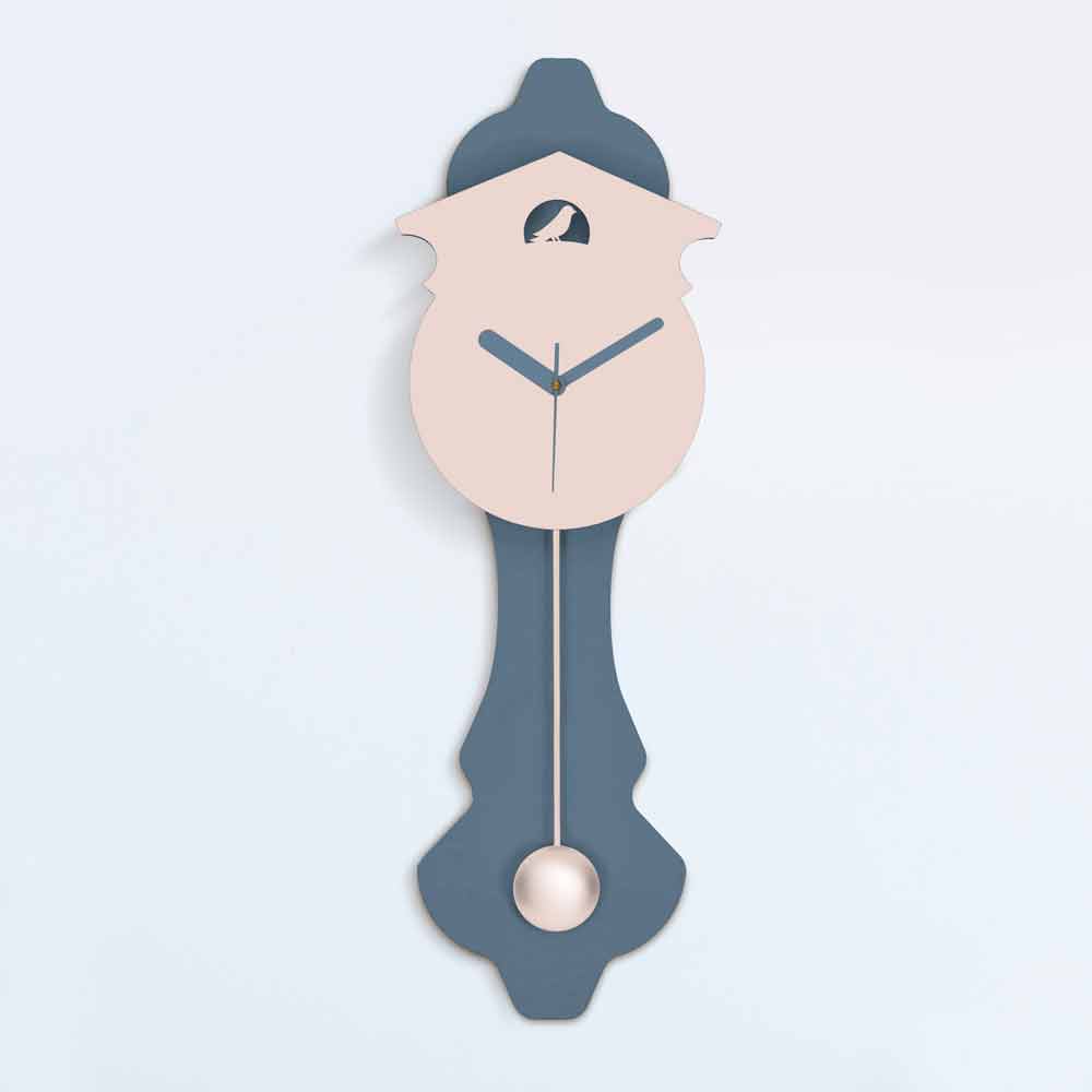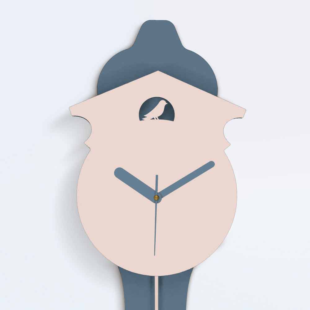 Nástěnné hodiny na kyvadlové hodiny šedé a růžové, moderní design z laserem řezaného dřeva, vyrobený v Itálii.