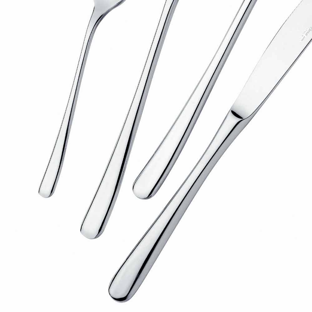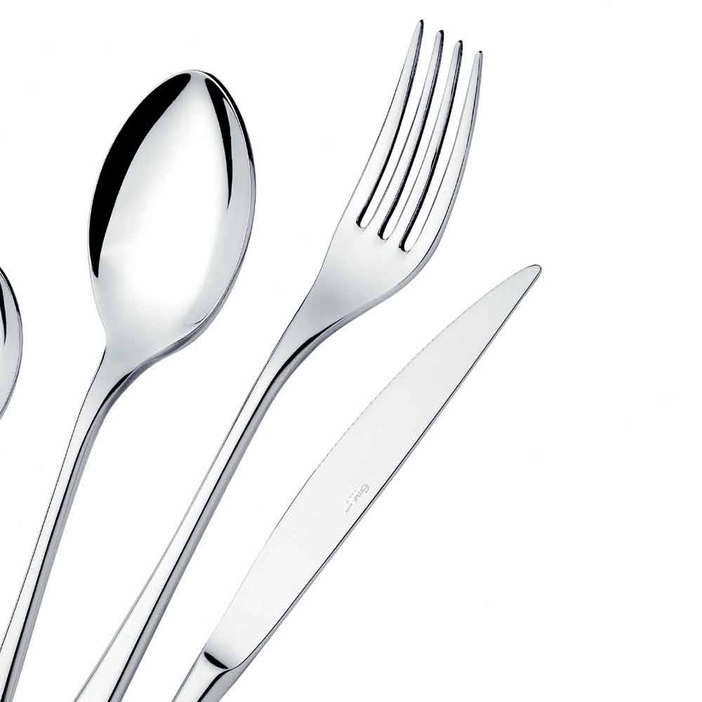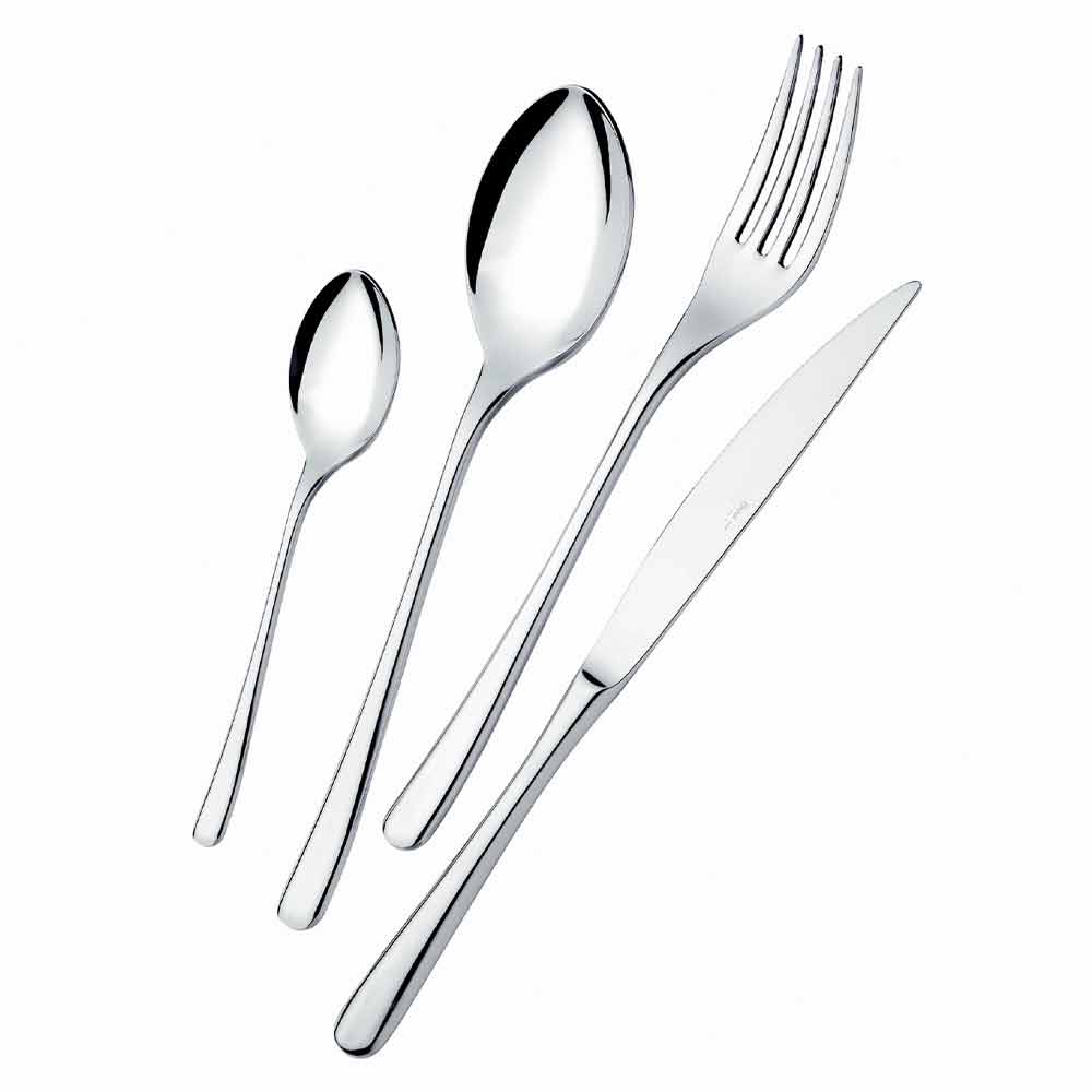 24 moderních designových příborů z nerezové oceli s lesklým povrchem, vyrobené v Itálii.