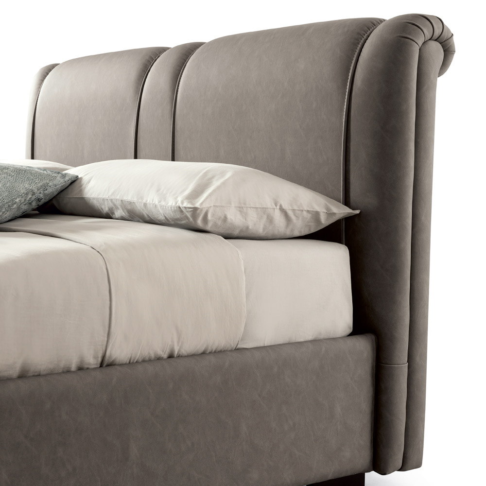 Zvláštností této postele je čalounění, vyrobené z ohnivzdorné kůže Taurus, dostupné v různých barvách .