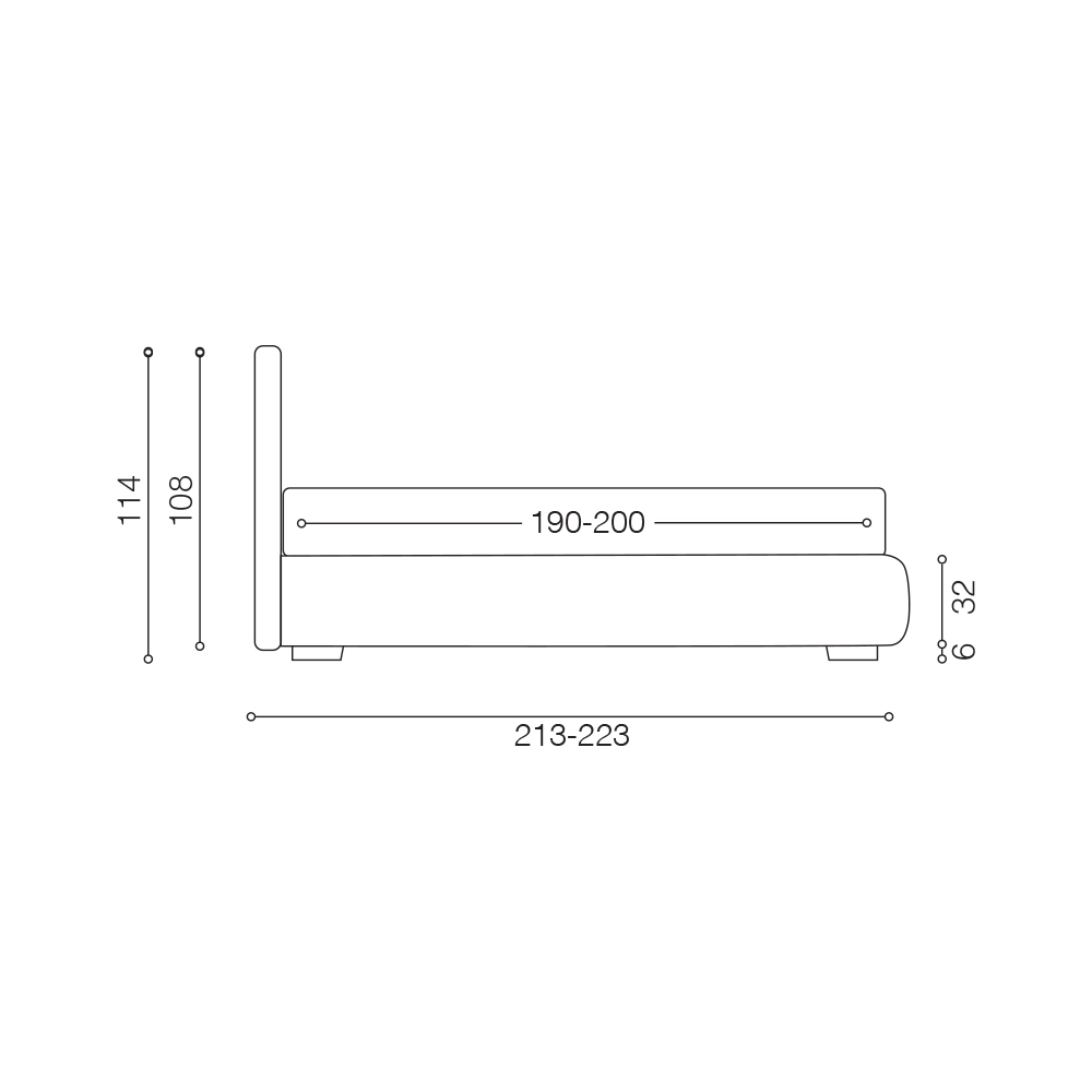 Čelo postele (neodnímatelné) má rám z topolové překližky a nedeformovatelné polyuretanové polstrování D28. Rám